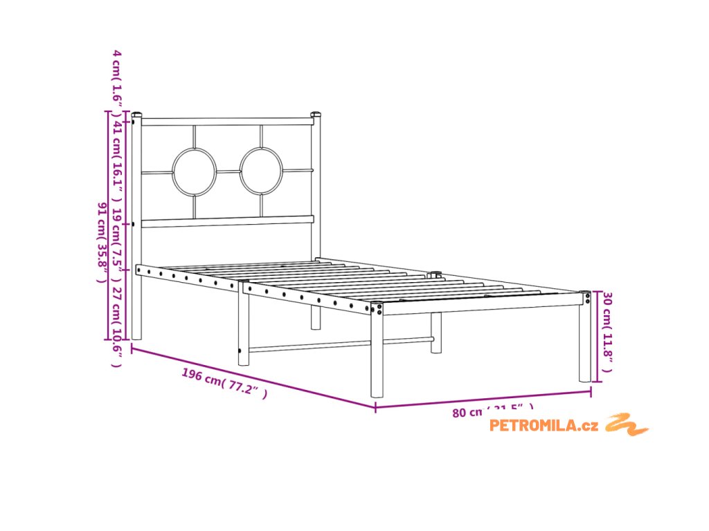 - Kovové lamely a nohy: Kovový rám postele je doplněn kovovými rošty a středovými nohami, které poskytují matraci tolik potřebnou oporu a prodyšnost.