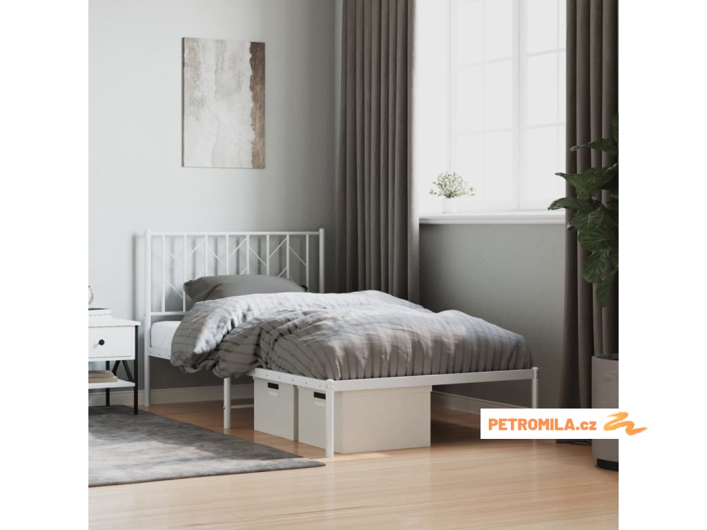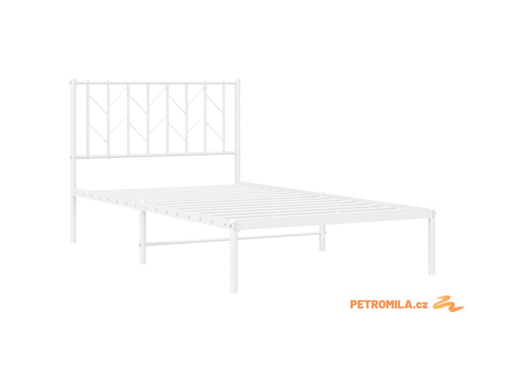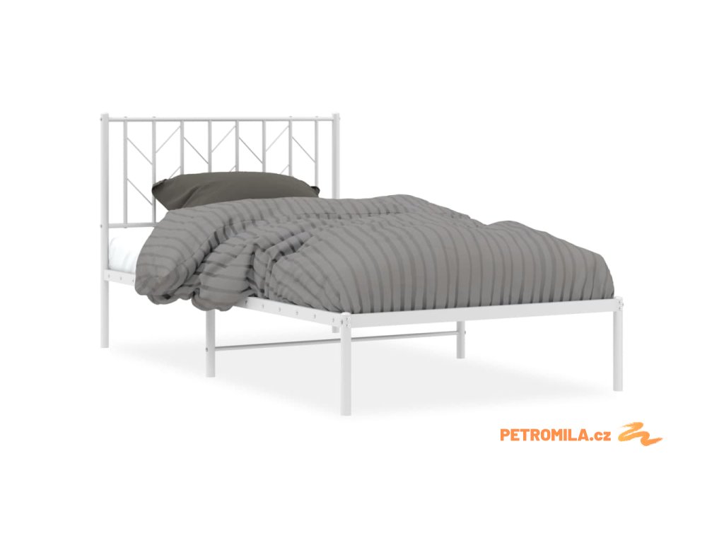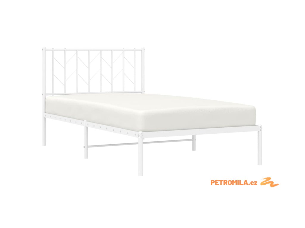 Kovový rám postele s čelem bílý 100 x 190 cm