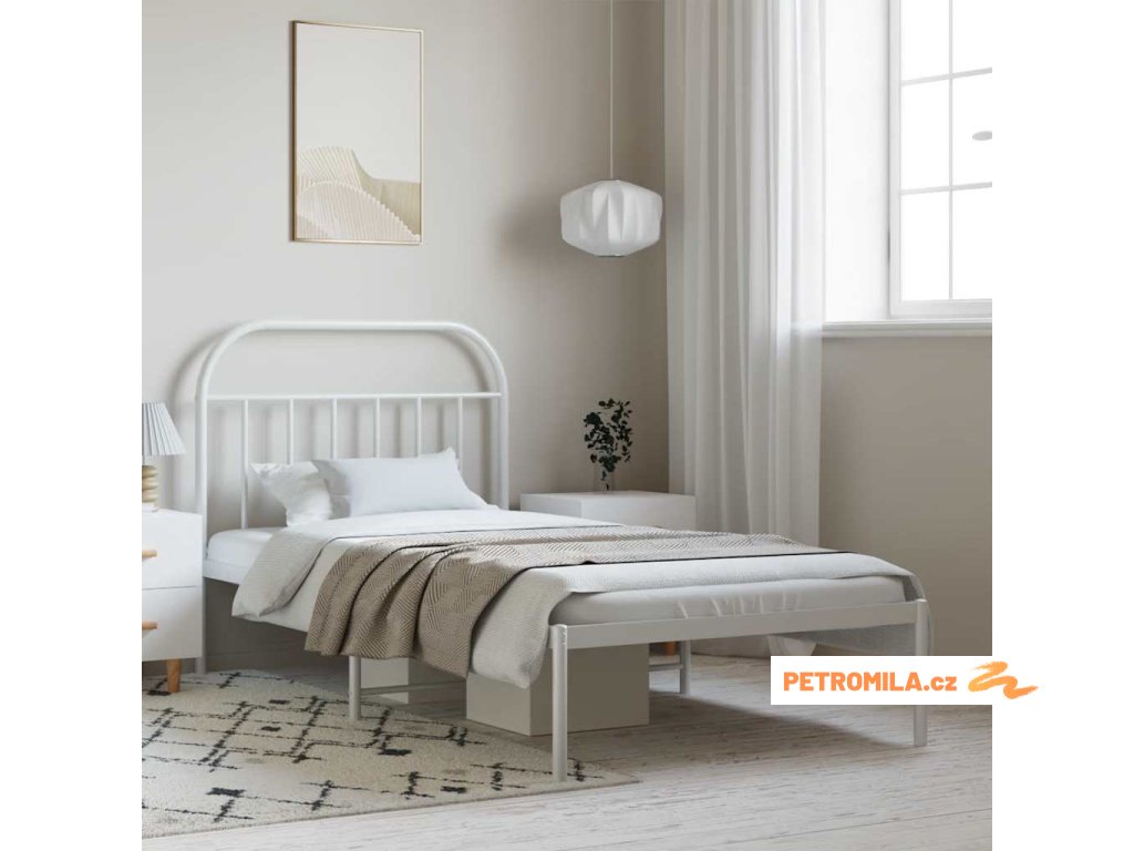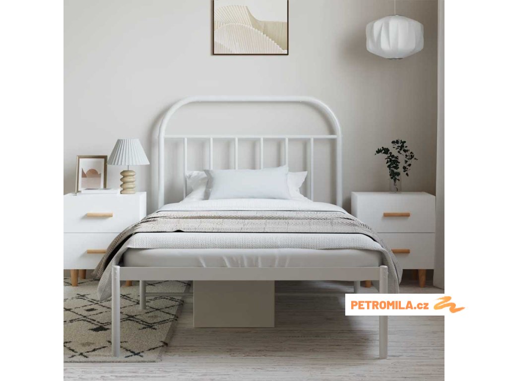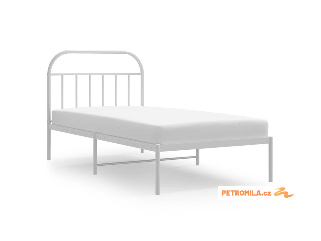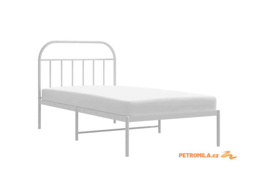 Kovový rám postele s čelem bílý 100 x 200 cm