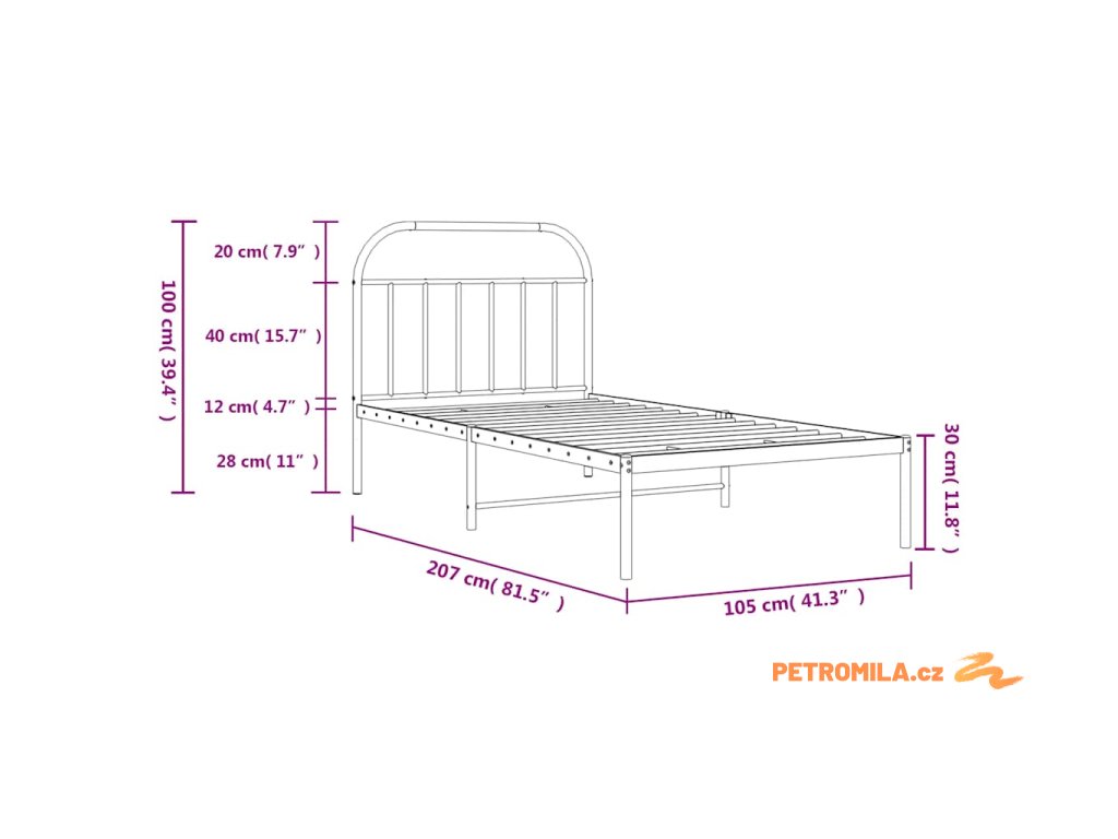 - Kovové lamely a nohy: Kovový rám postele je doplněn kovovými rošty a středovými nohami, které poskytují matraci tolik potřebnou oporu a prodyšnost.