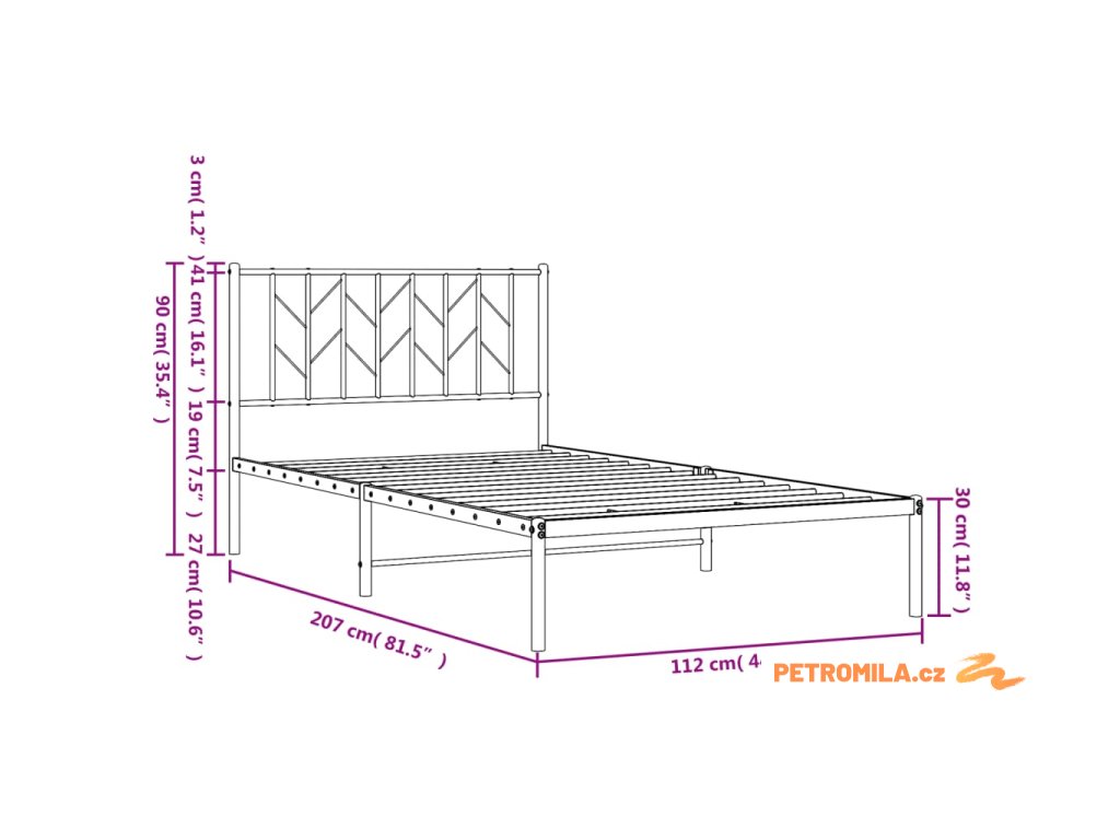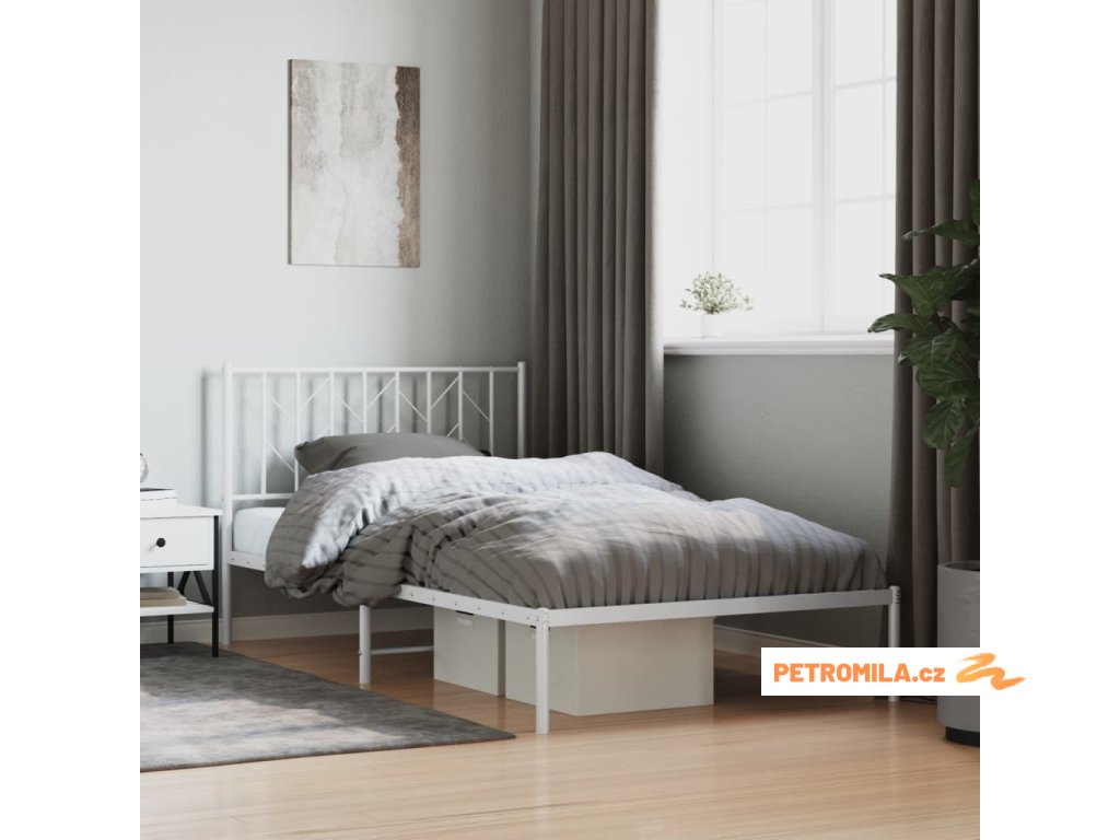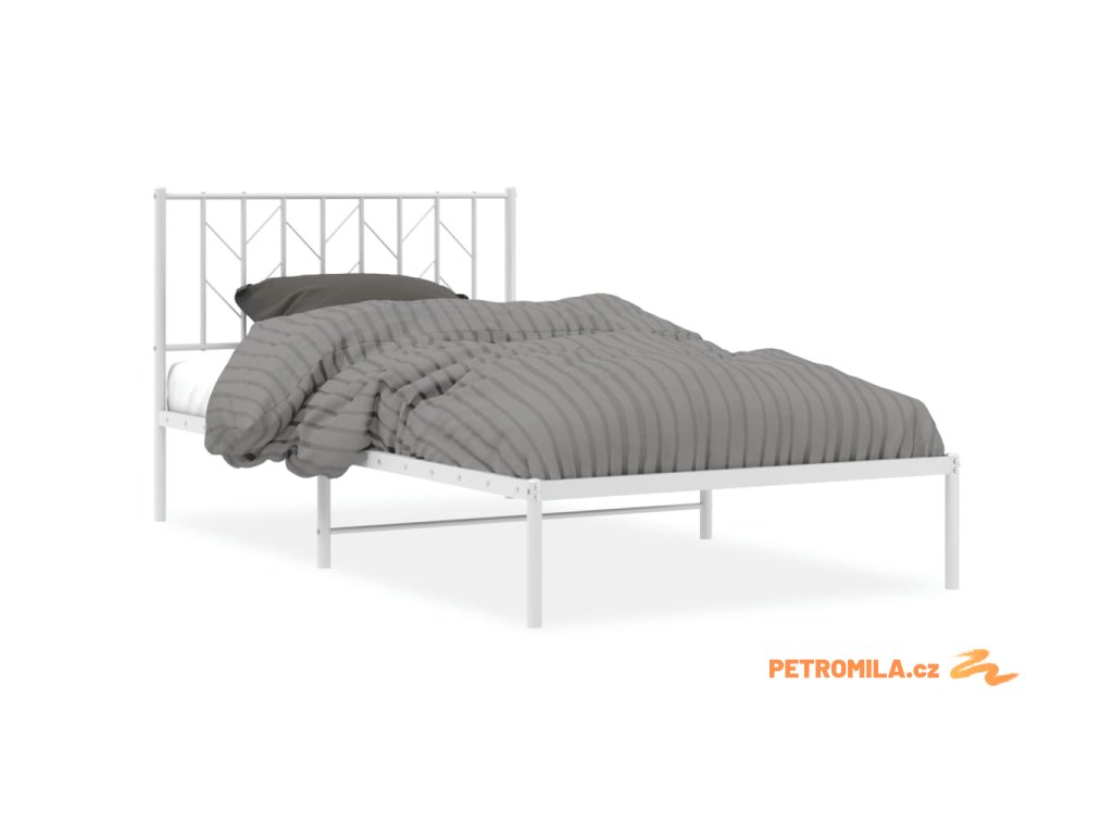 Kovový rám postele s čelem bílý 107 x 203 cm