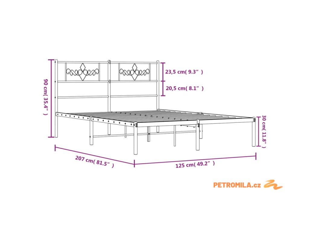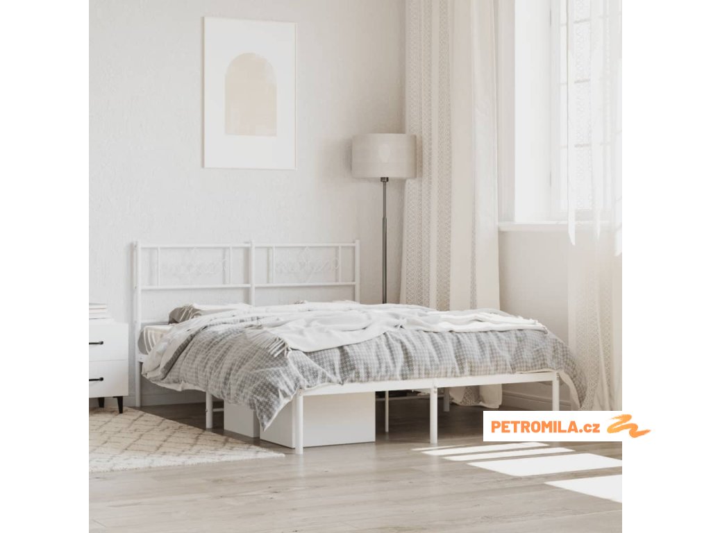 Kovový rám postele s čelem bílý 120 x 200 cm