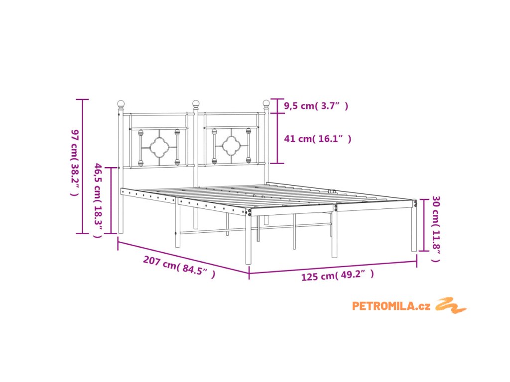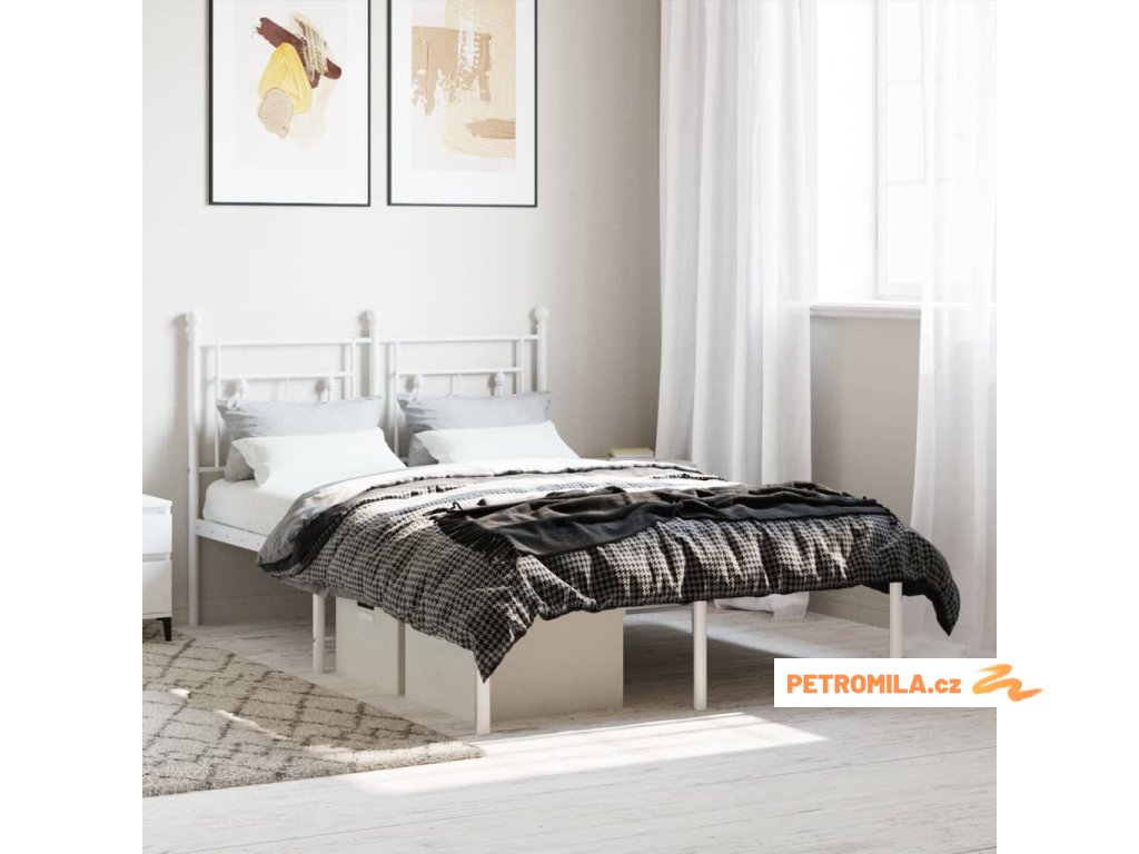 Kovový rám postele s čelem bílý 120 x 200 cm