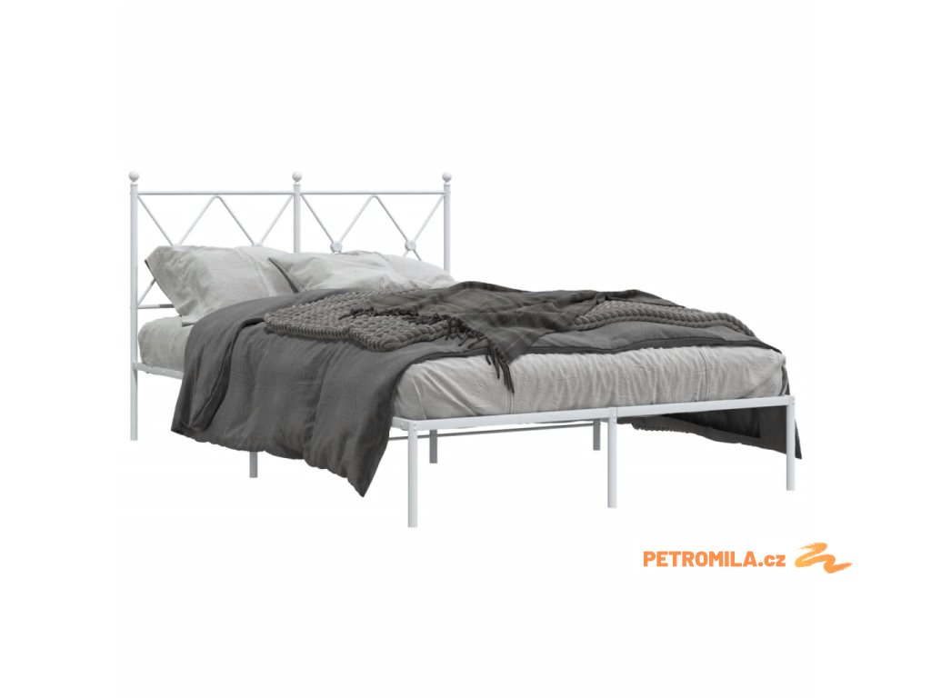 Kovový rám postele s čelem bílý 120 x 200 cm