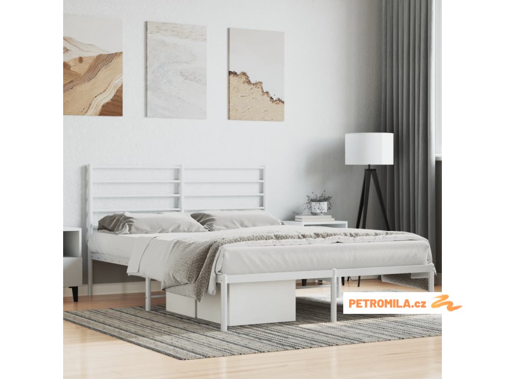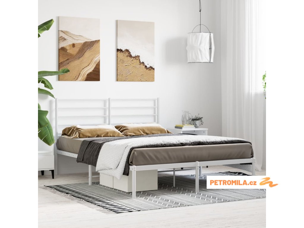 Kovový rám postele s čelem bílý 120 x 200 cm