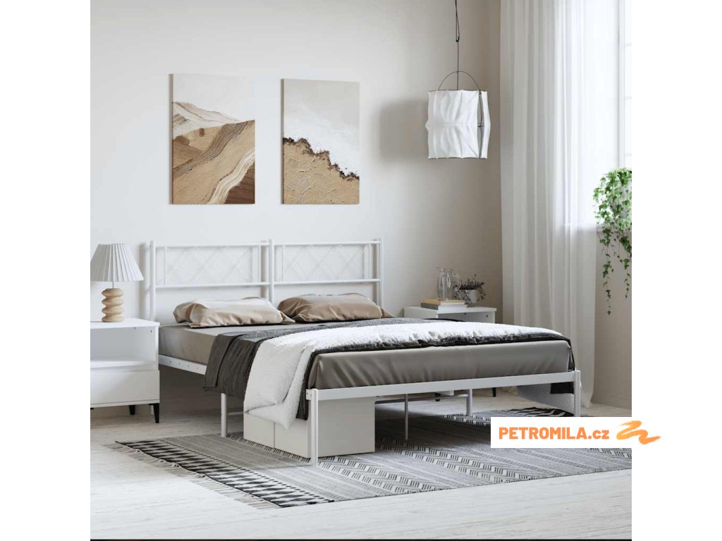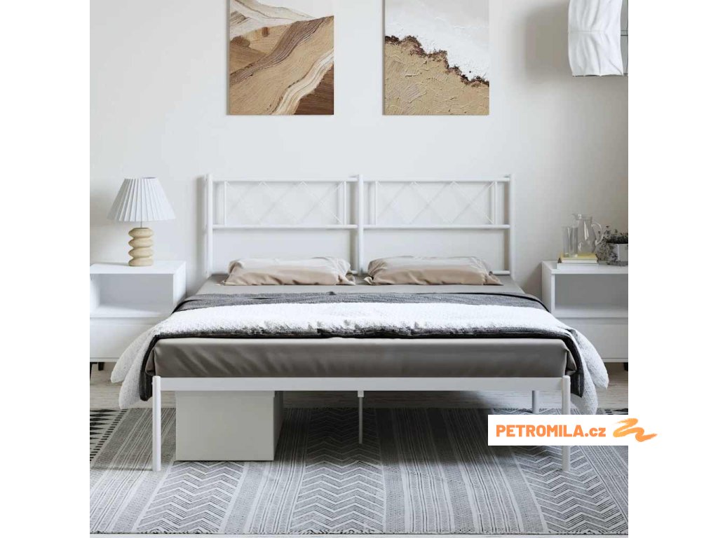 Kovový rám postele s čelem bílý 135 x 190 cm