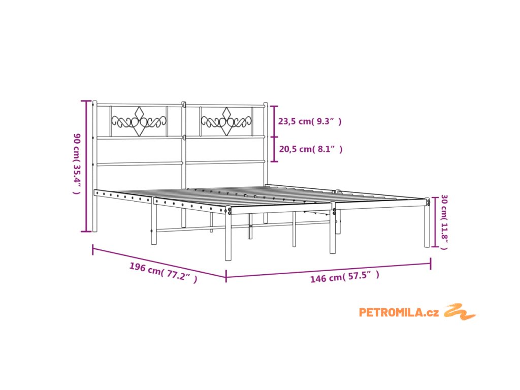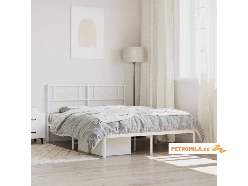 Kovový rám postele s čelem bílý 140 x 190 cm