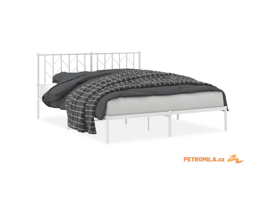 Kovový rám postele s čelem bílý 160 x 200 cm