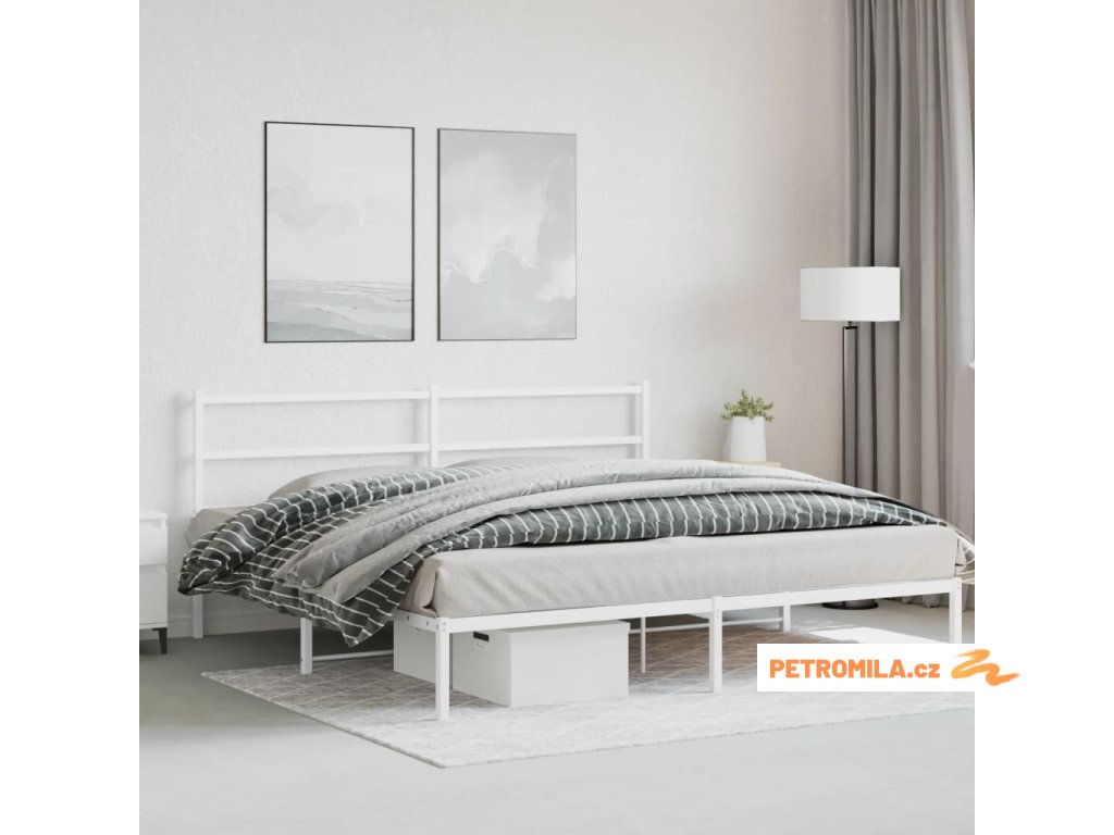 Kovový rám postele s čelem bílý 183 x 213 cm