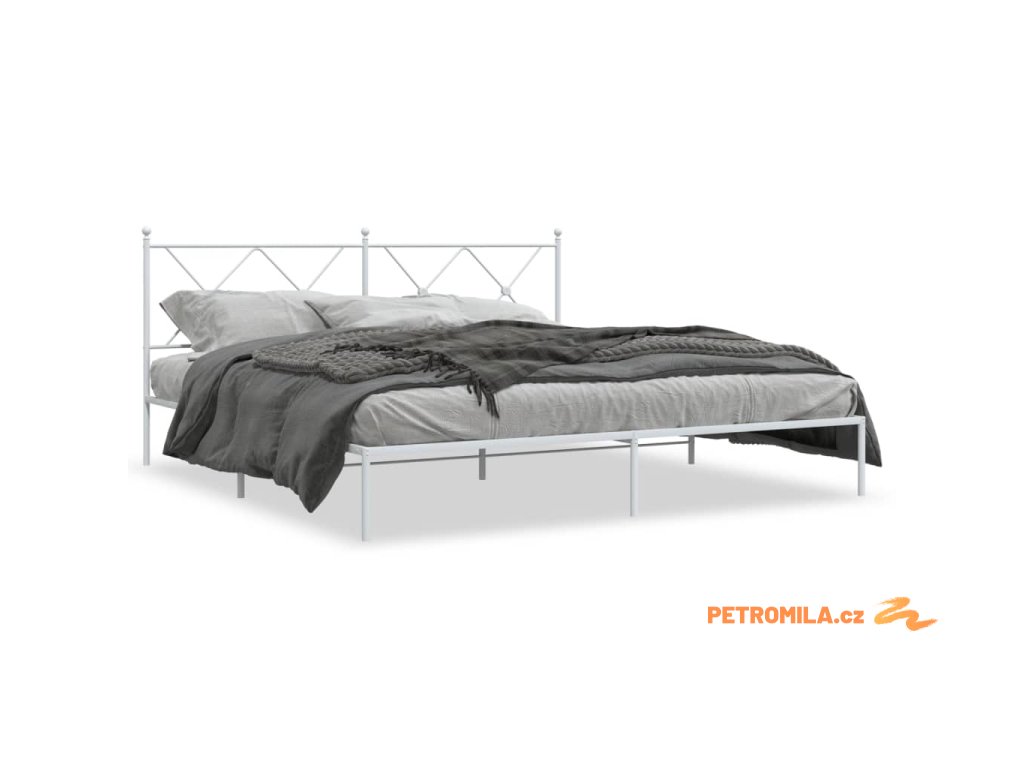 Kovový rám postele s čelem bílý 183 x 213 cm