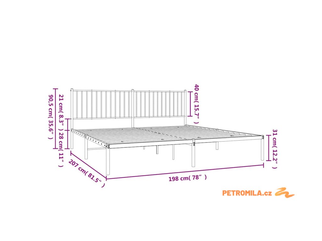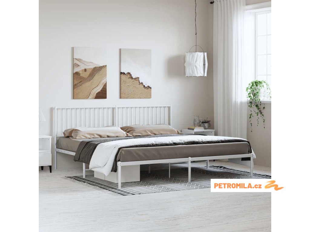Kovový rám postele s čelem bílý 193 x 203 cm