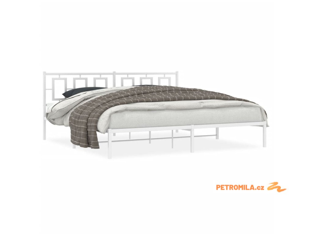 Kovový rám postele s čelem bílý 200 x 200 cm