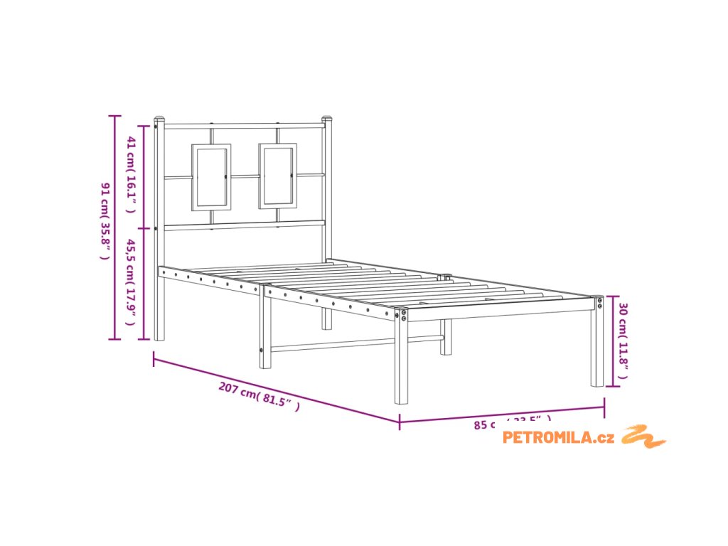 - Kovové lamely a nohy: Kovový rám postele je doplněn kovovými rošty a středovými nohami, které poskytují matraci tolik potřebnou oporu a prodyšnost.