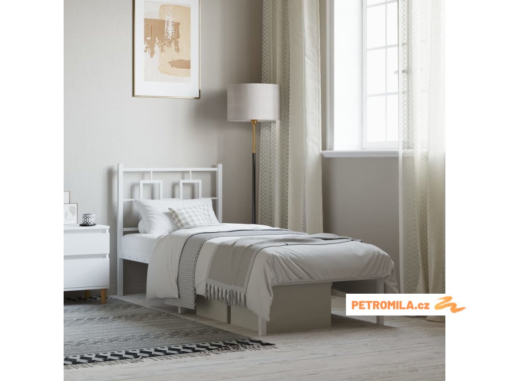 Kovový rám postele s čelem bílý 80 x 200 cm