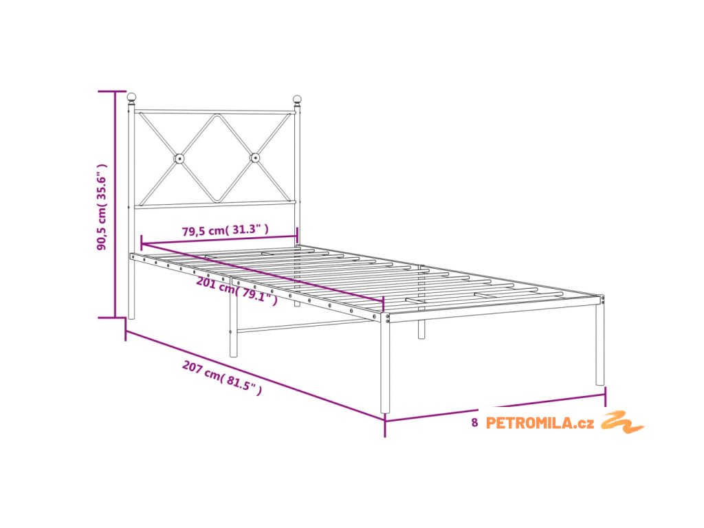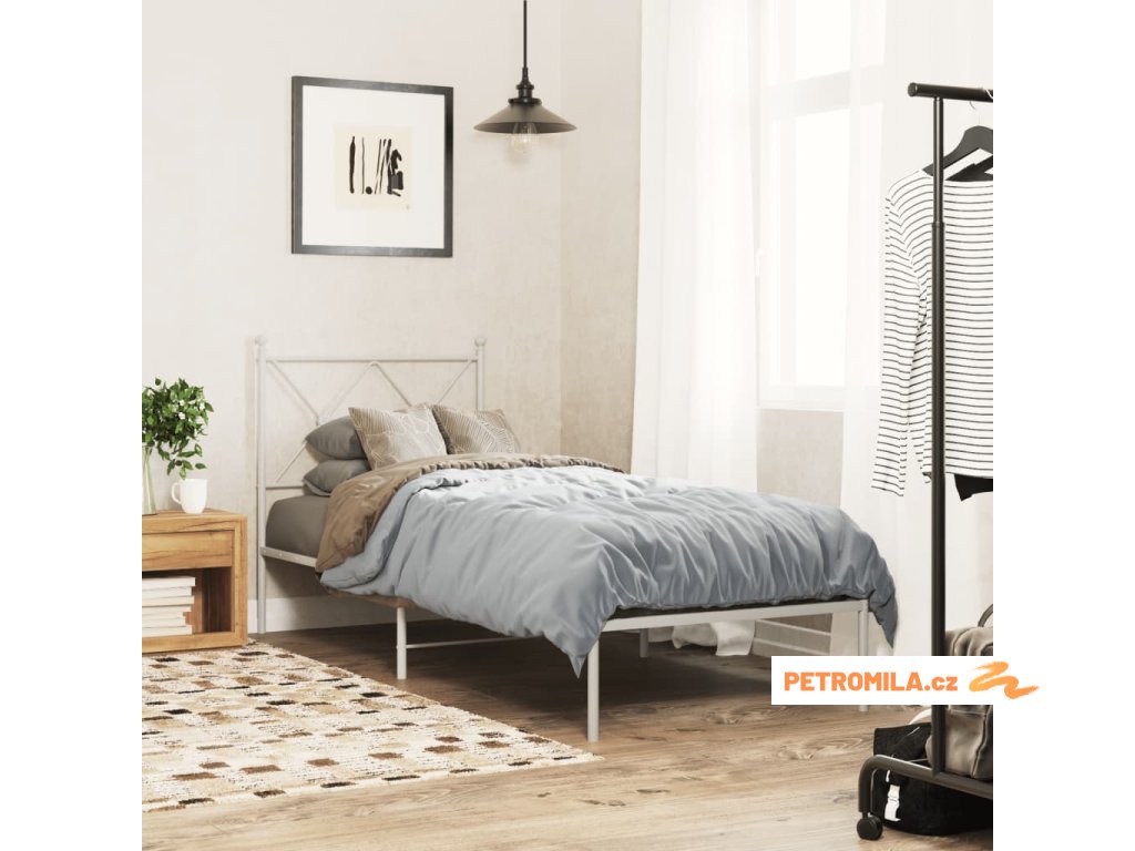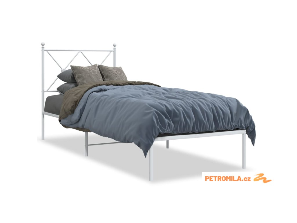 Kovový rám postele s čelem bílý 80 x 200 cm