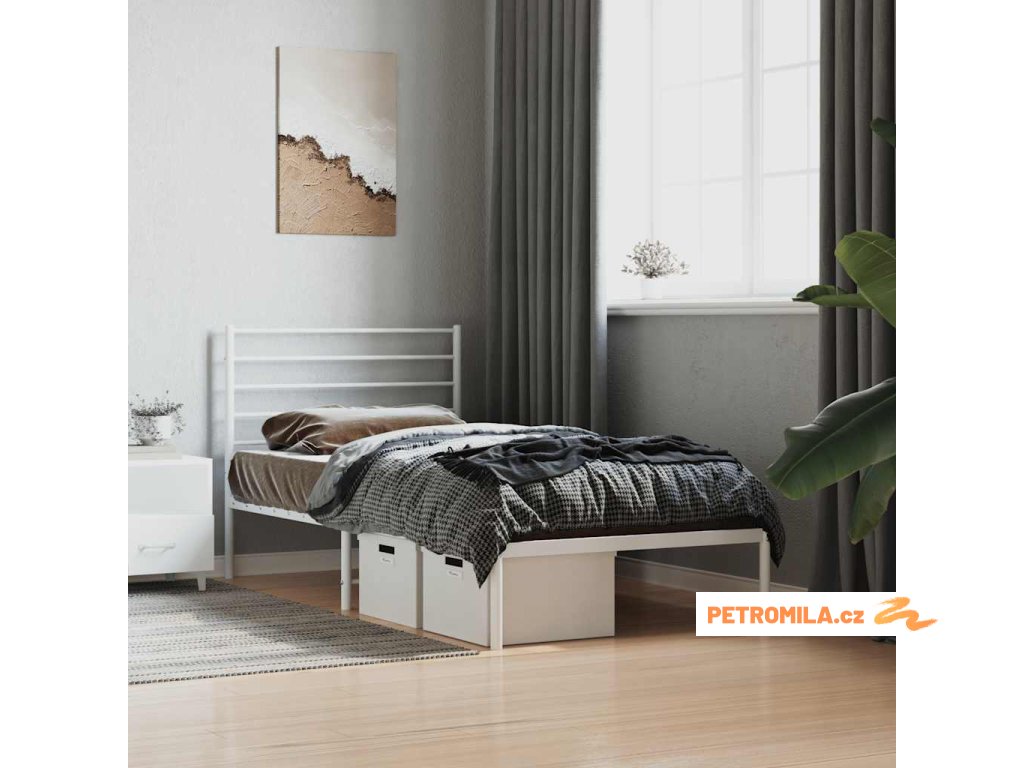 Kovový rám postele s čelem bílý 80 x 200 cm