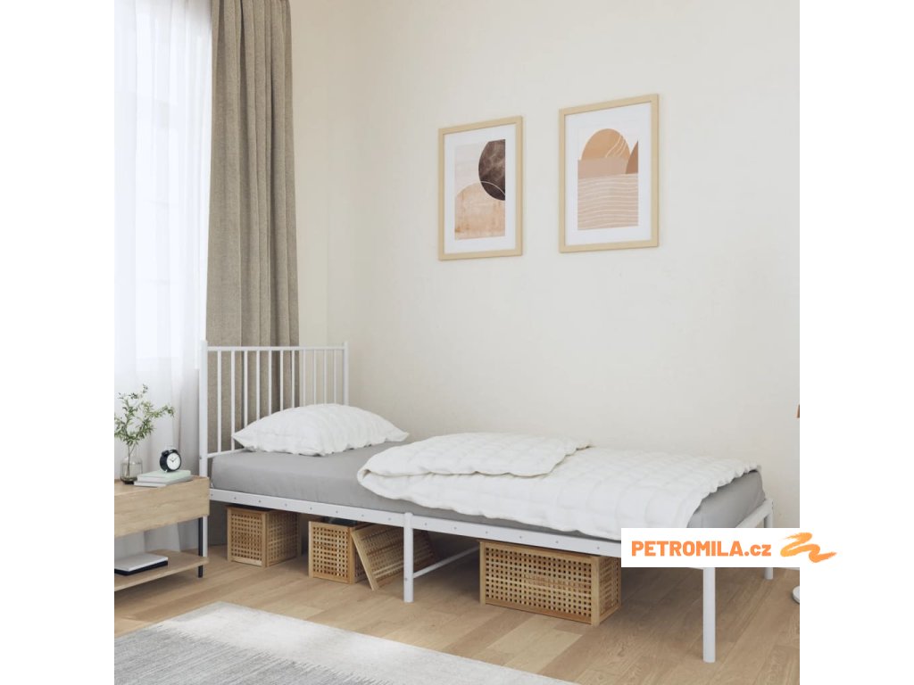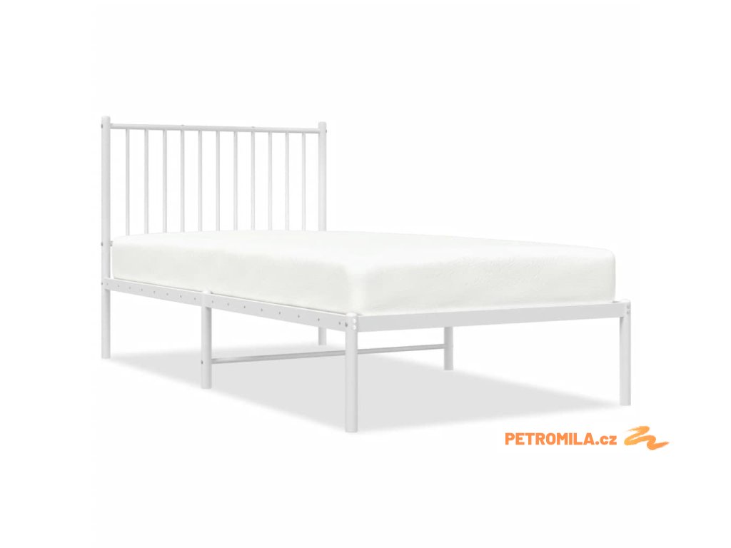 Kovový rám postele s čelem bílý 90 x 190 cm