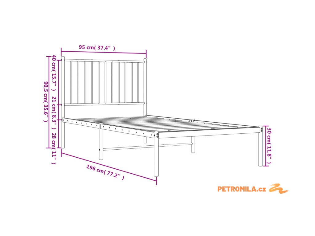 - Vhodné rozměry matrace: 90 x 190 cm (Š x D) (matrace není součástí balení)