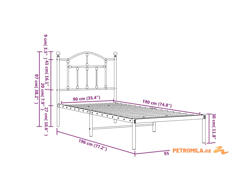 - Kovové lamely a nohy: Kovový rám postele je doplněn kovovými rošty a středovými nohami, které poskytují matraci tolik potřebnou oporu a prodyšnost.