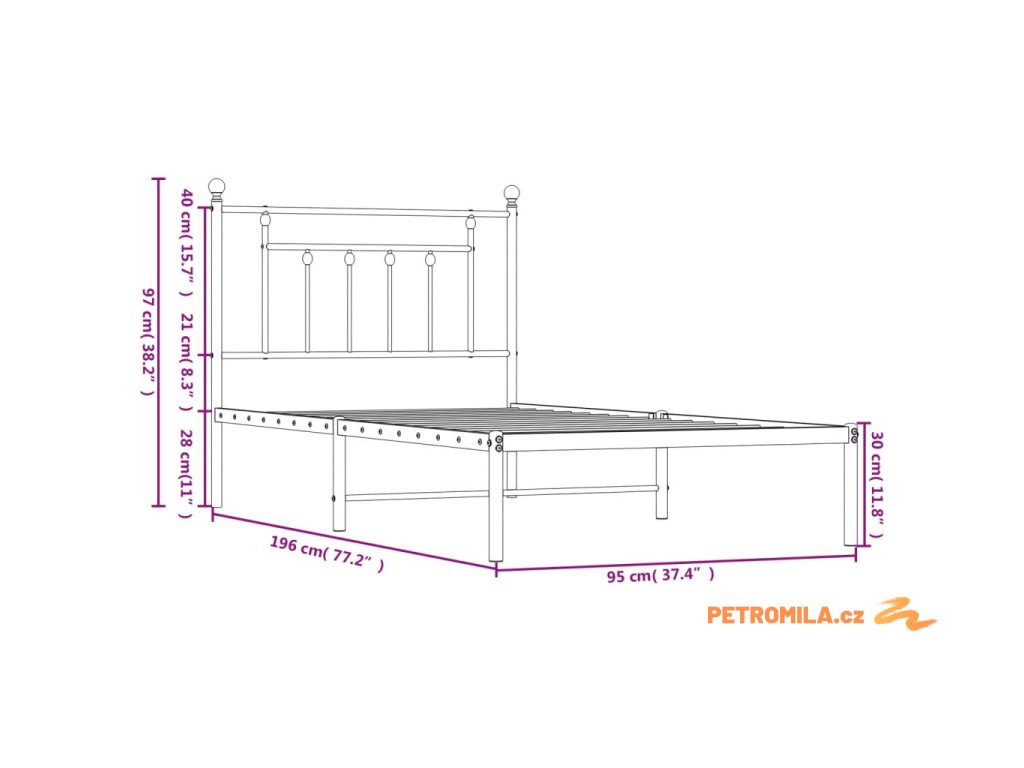 - Kovové lamely a nohy: Kovový rám postele je doplněn kovovými rošty a středovými nohami, které poskytují matraci tolik potřebnou oporu a prodyšnost.