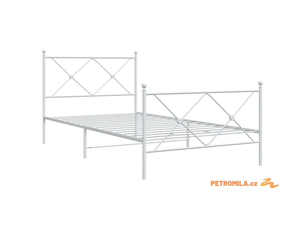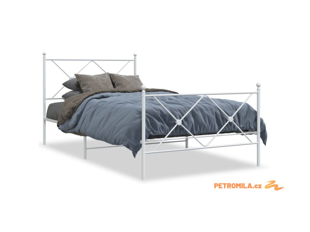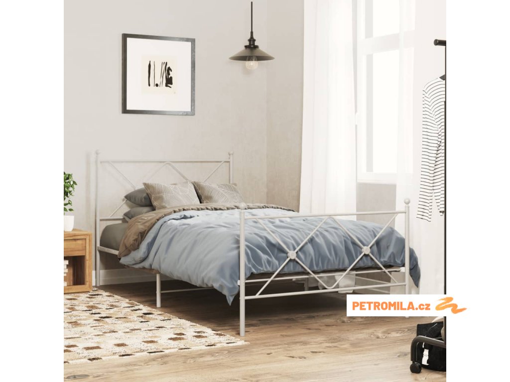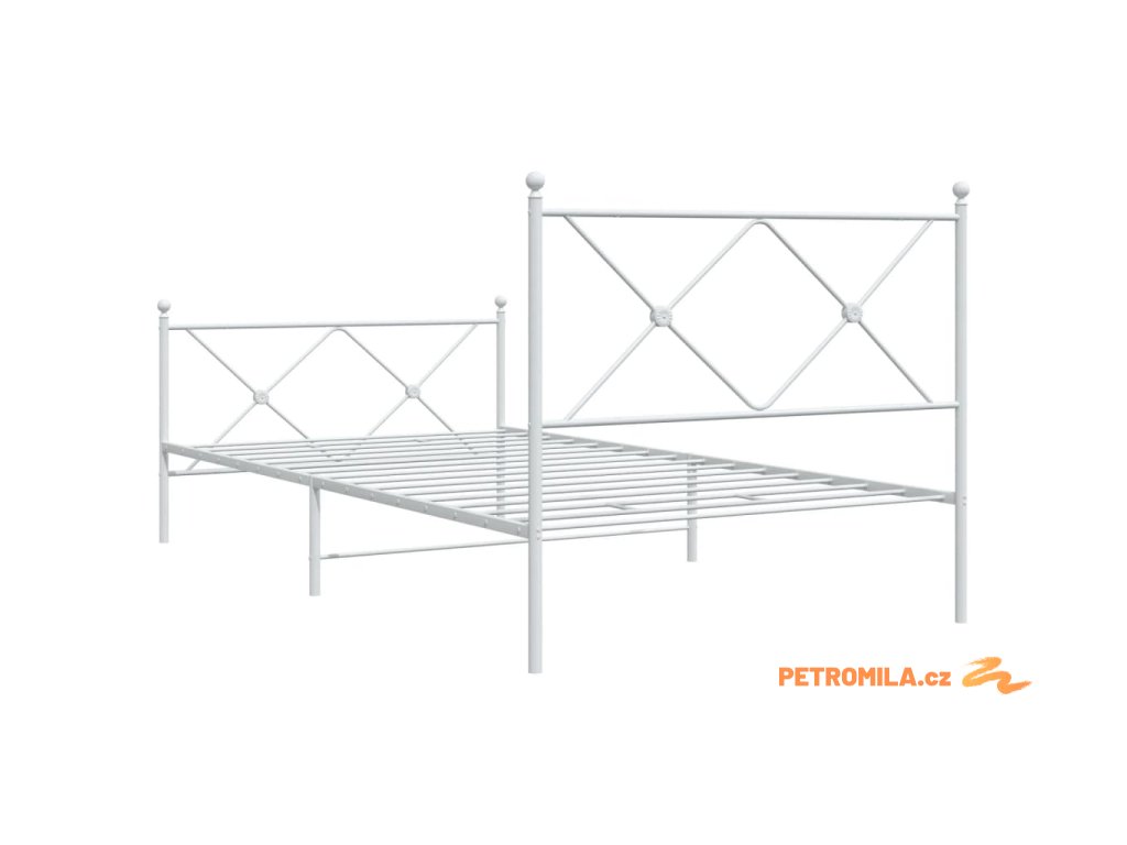 Kovový rám postele s hlavovým a nožním čelem bílý 100 x 190 cm