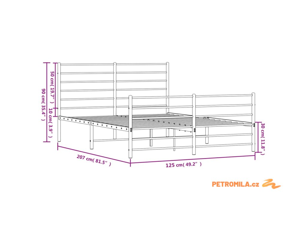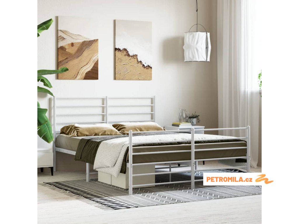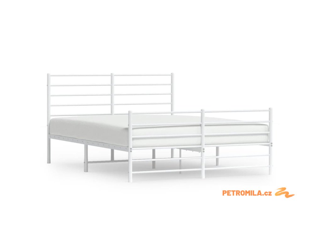Kovový rám postele s hlavovým a nožním čelem bílý 120 x 200 cm
