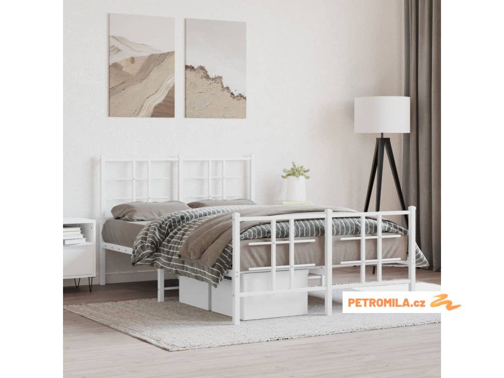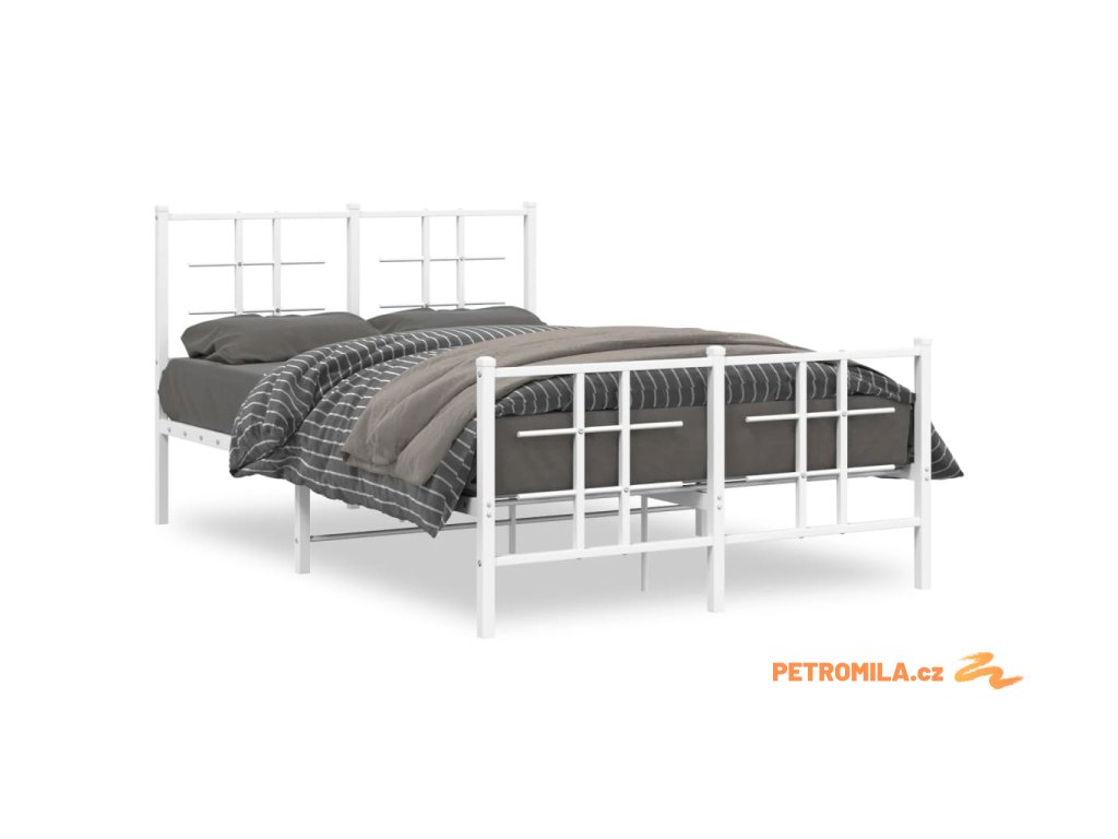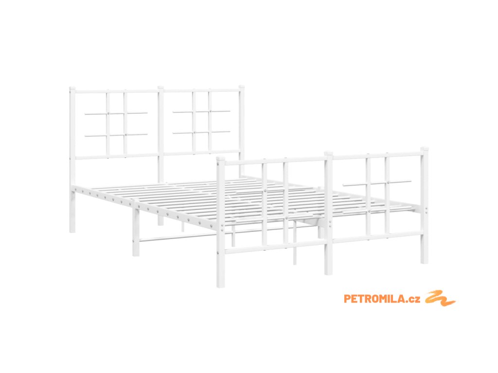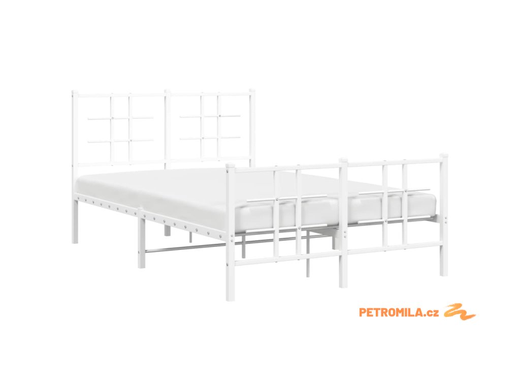 Kovový rám postele s hlavovým a nožním čelem bílý 120 x 200 cm