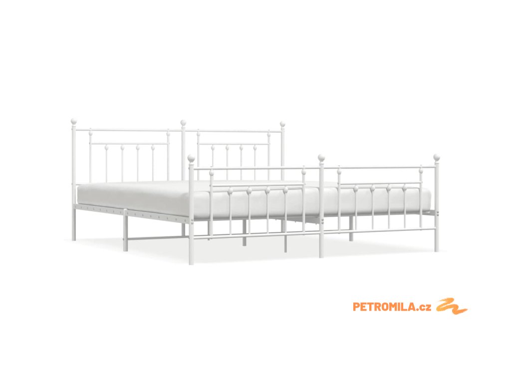 Kovový rám postele s hlavovým a nožním čelem bílý 200 x 200 cm