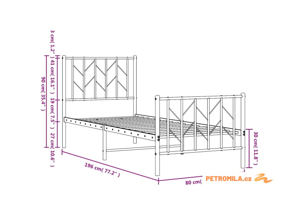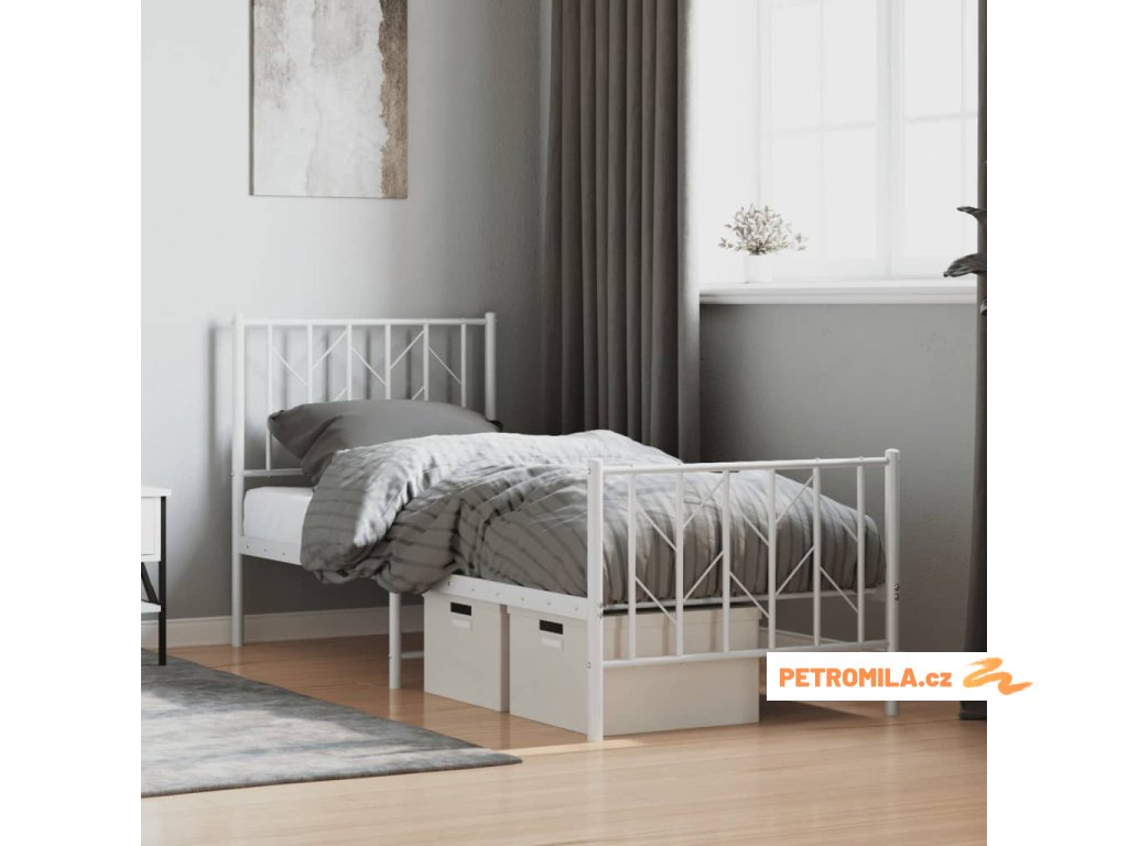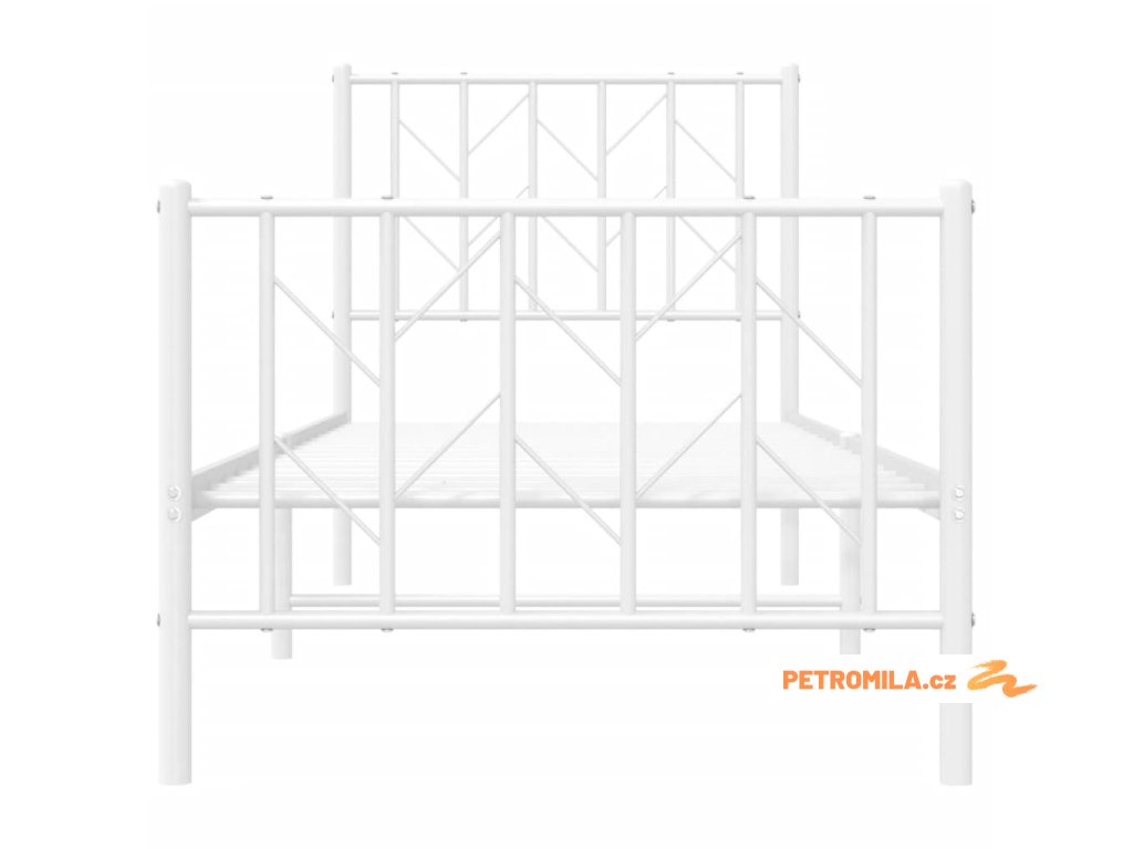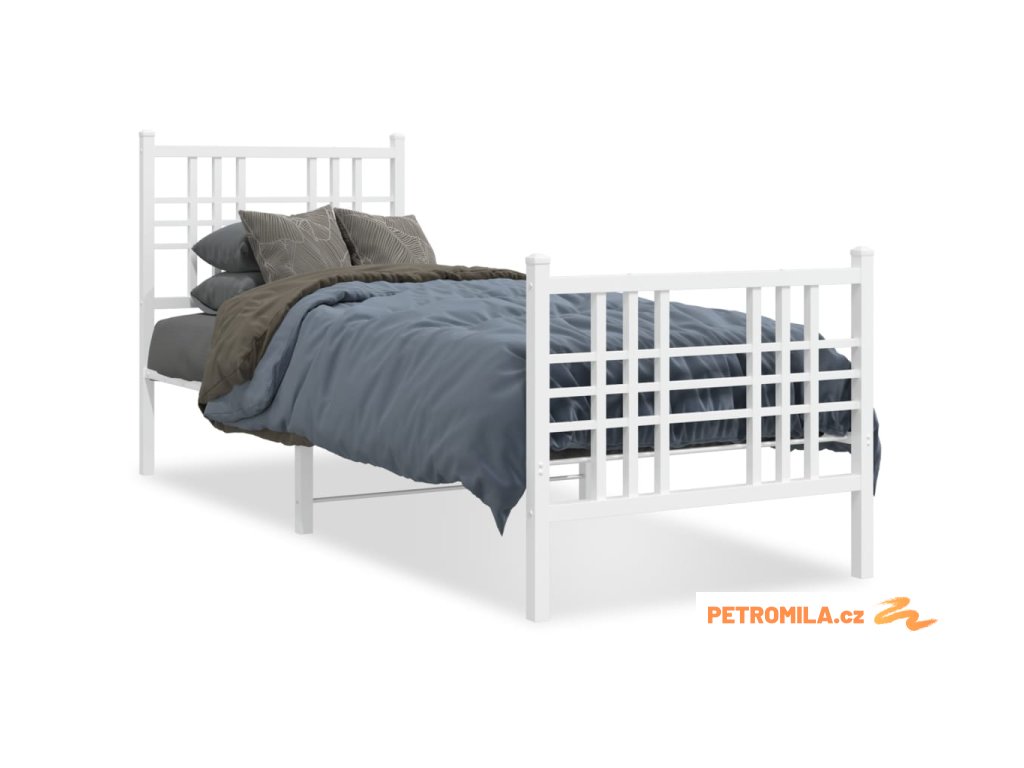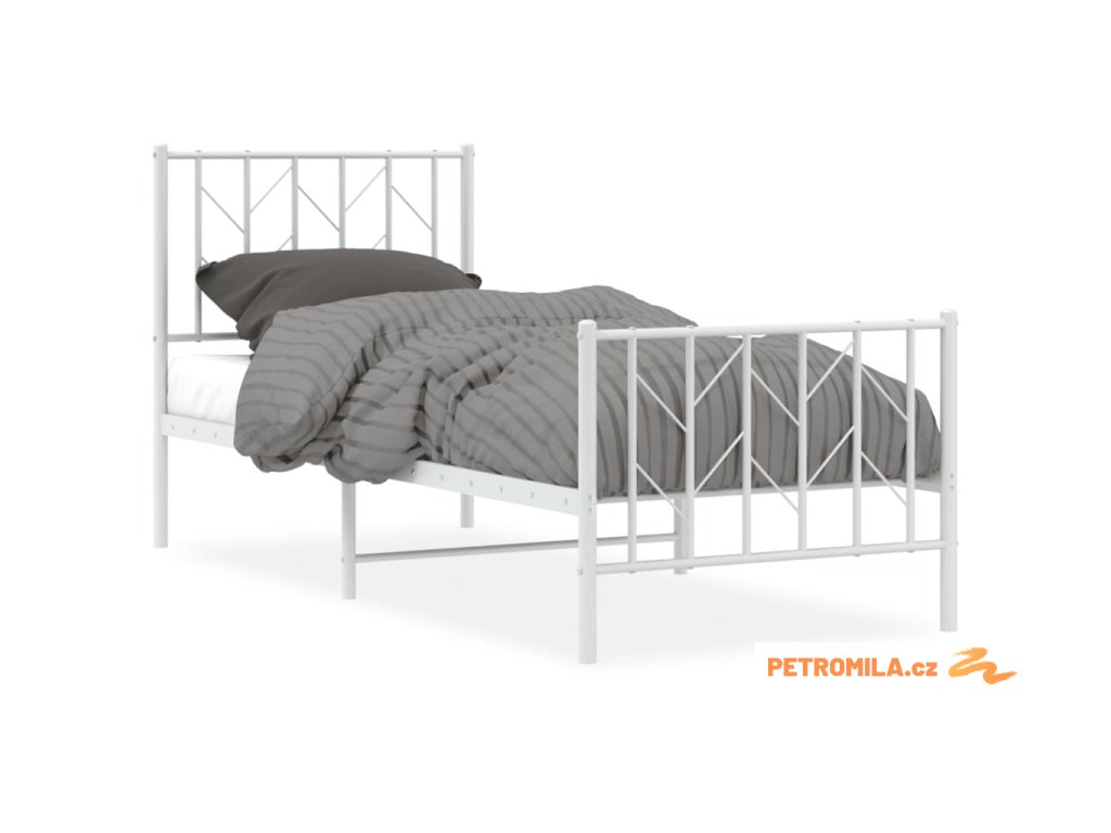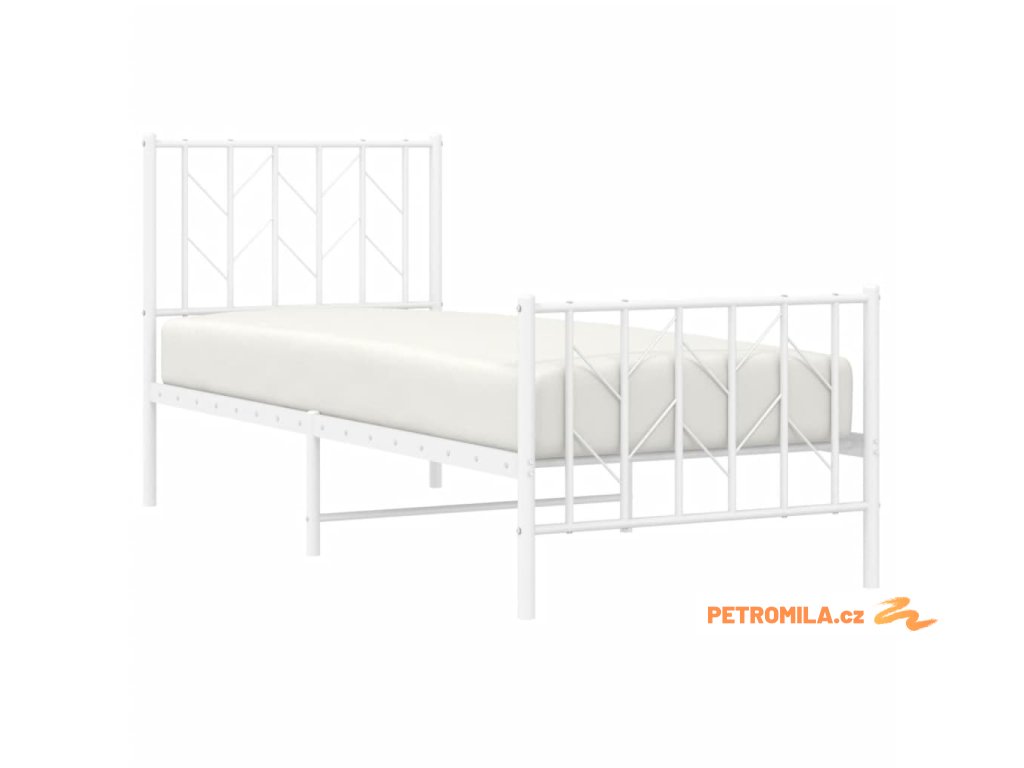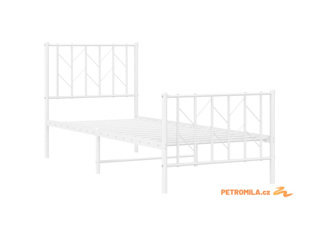 Kovový rám postele s hlavovým a nožním čelem bílý 75 x 190 cm