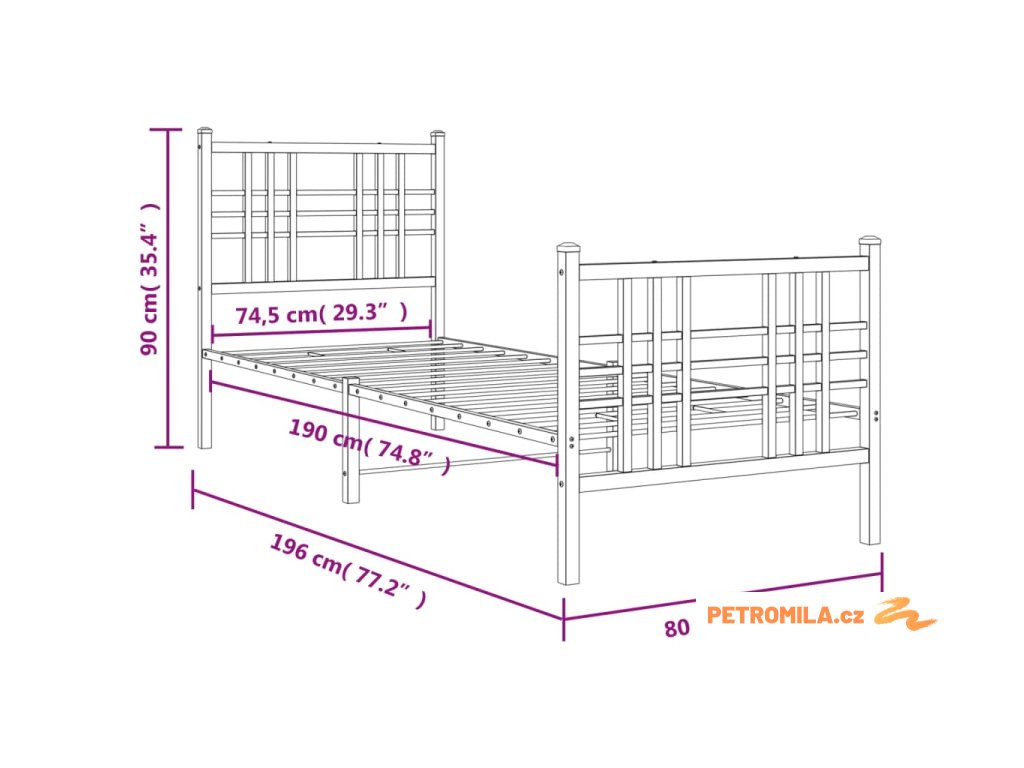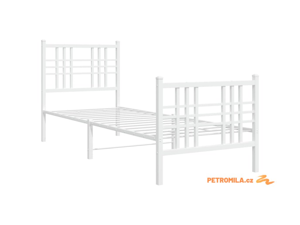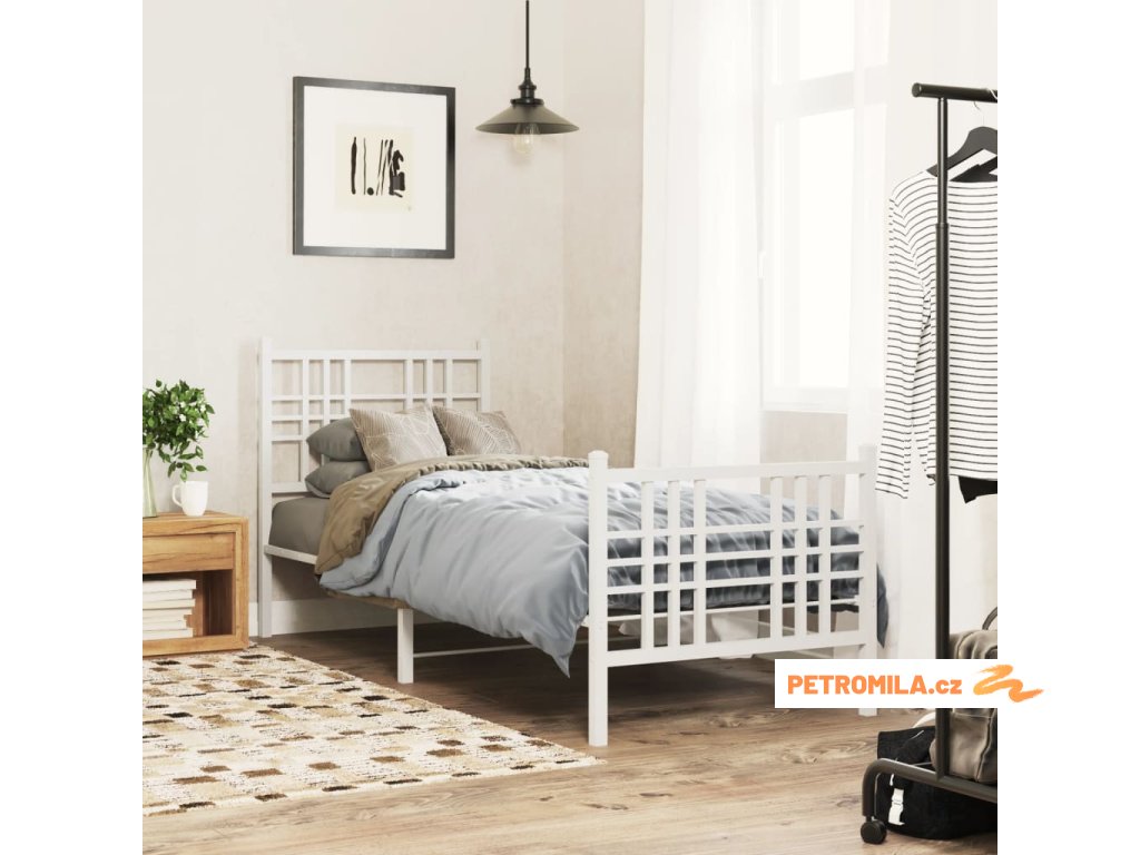 Kovový rám postele s hlavovým a nožním čelem bílý 75 x 190 cm