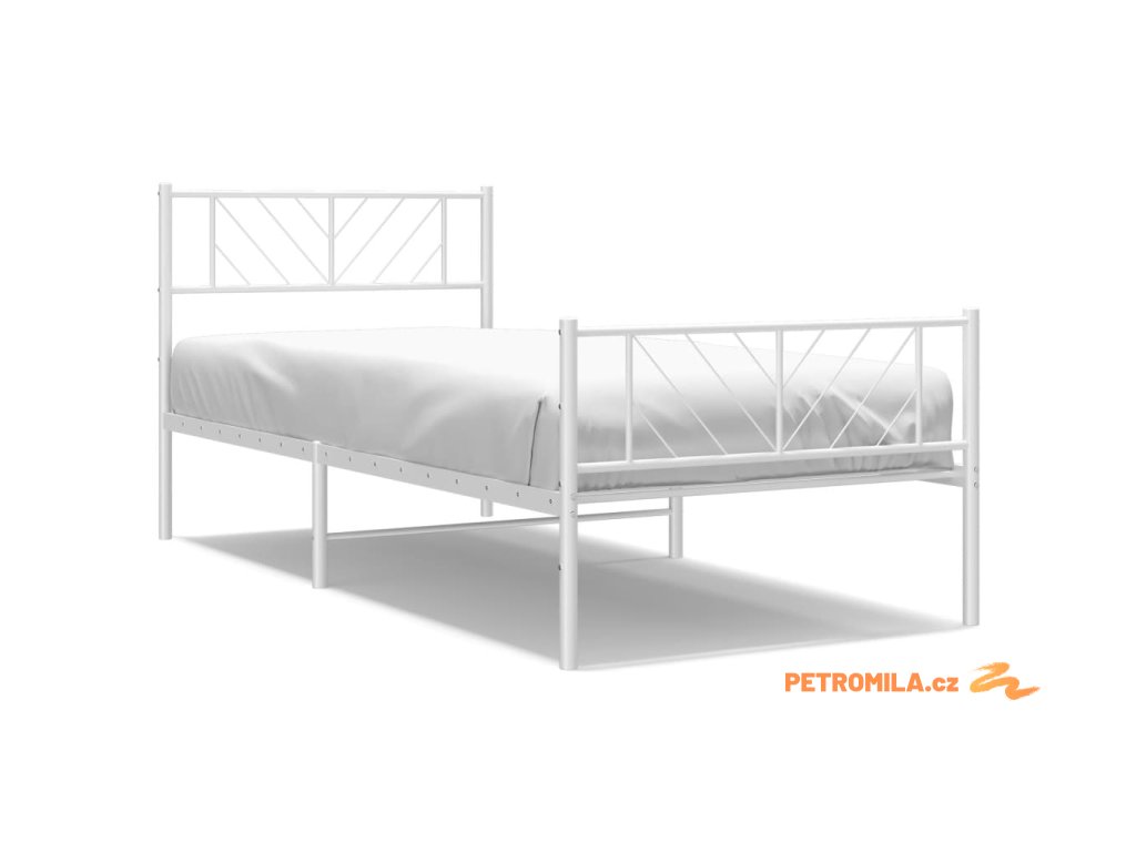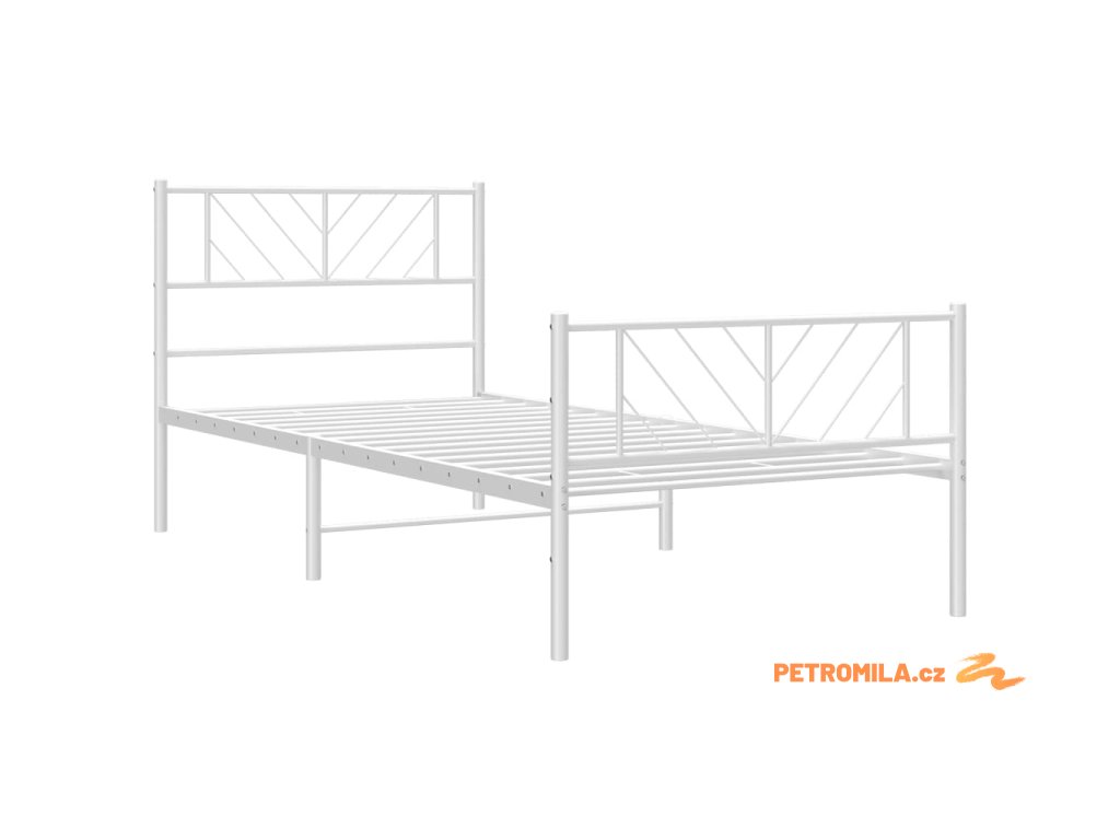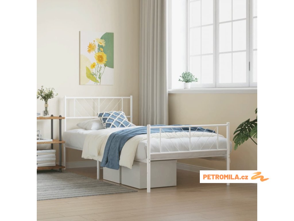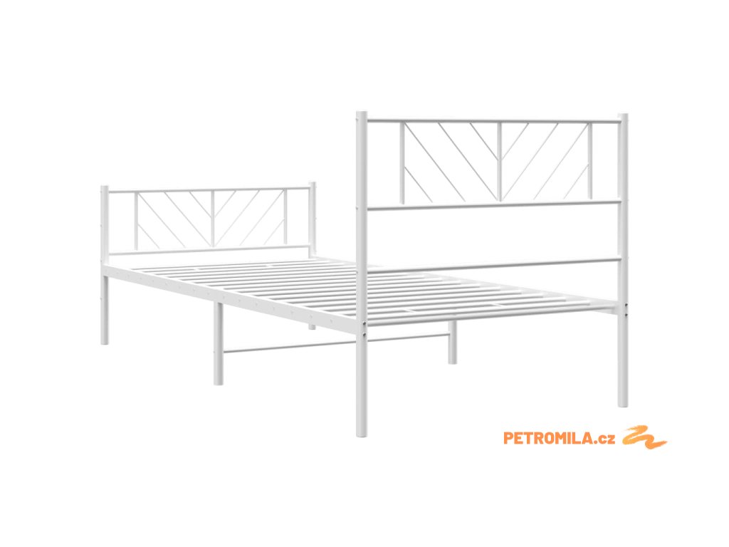 Kovový rám postele s hlavovým a nožním čelem bílý 75 x 190 cm