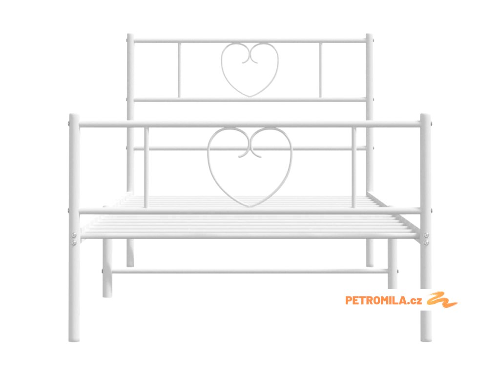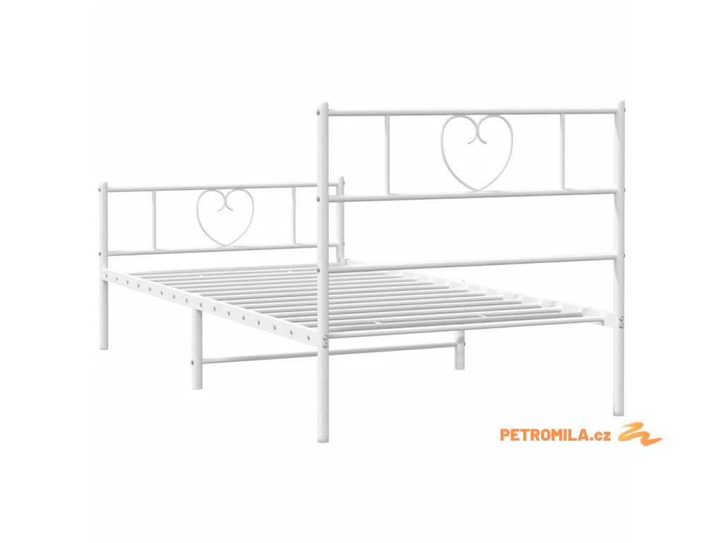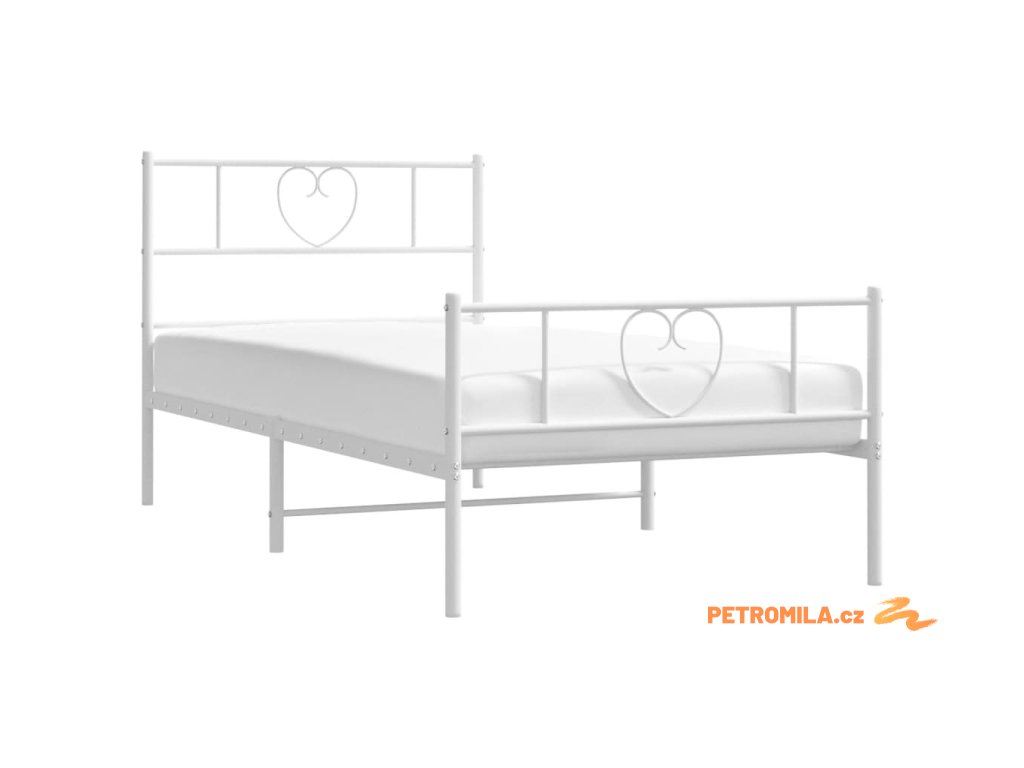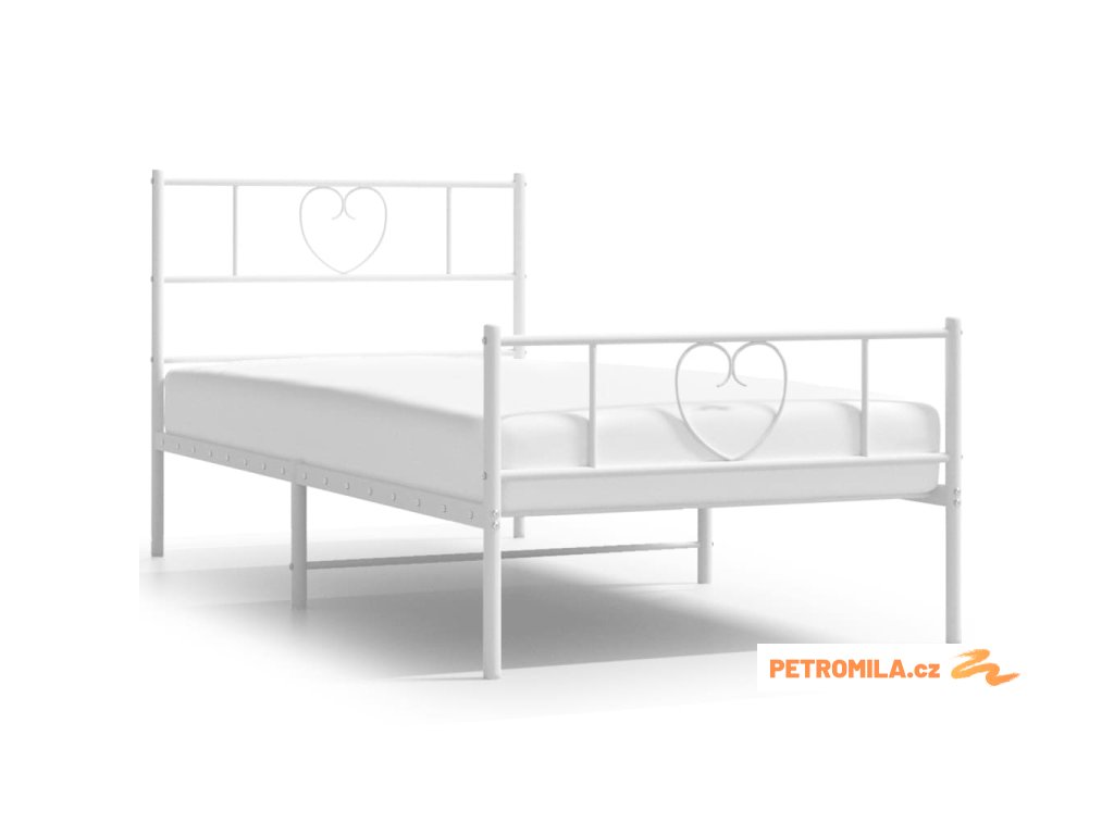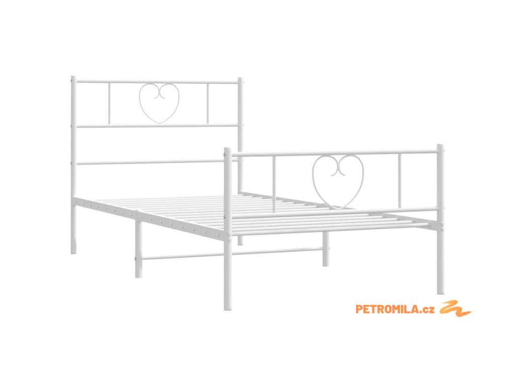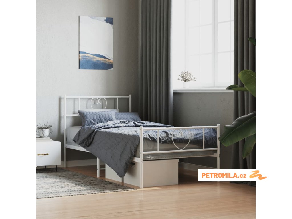 Kovový rám postele s hlavovým a nožním čelem bílý 90 x 190 cm