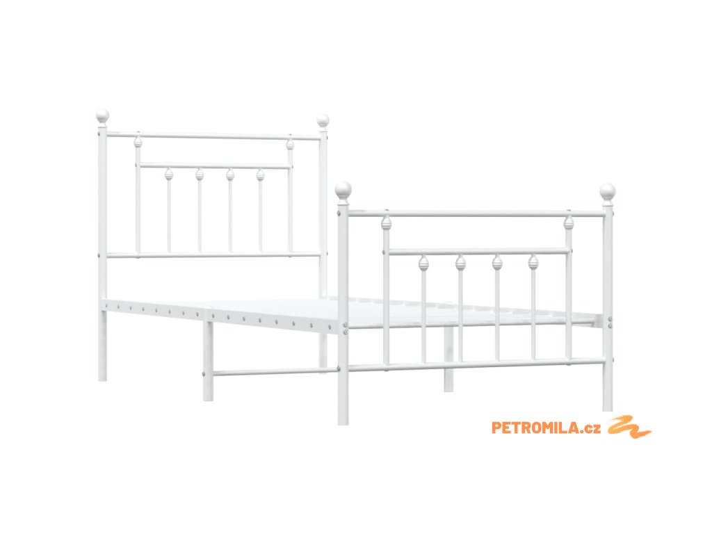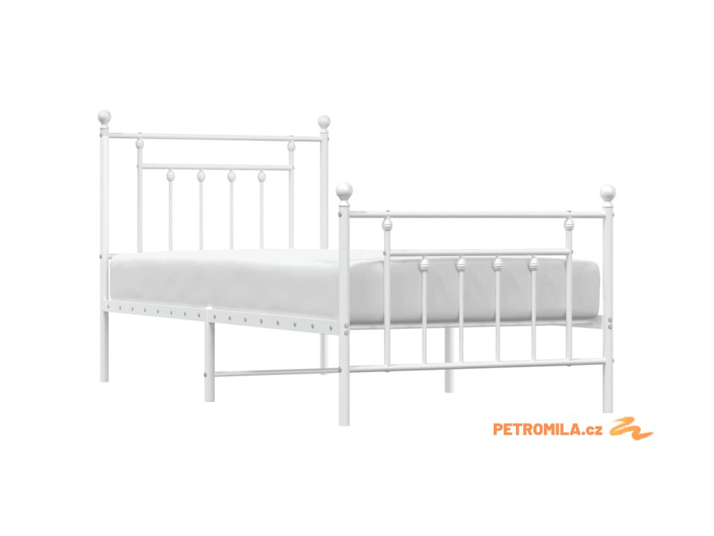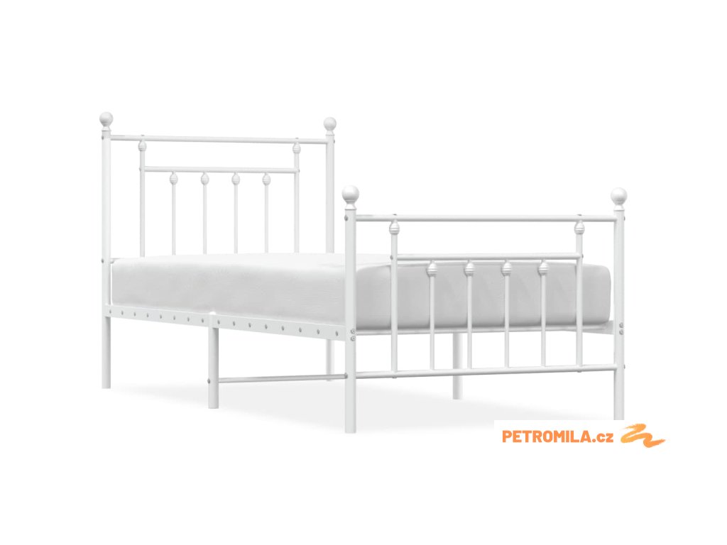 Kovový rám postele s hlavovým a nožním čelem bílý 90 x 190 cm
