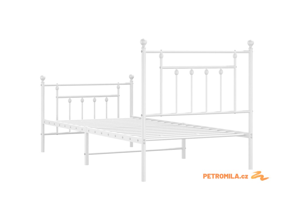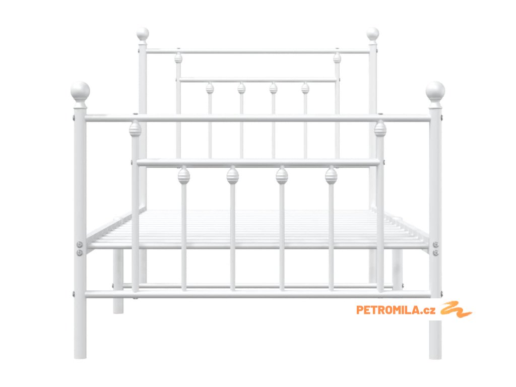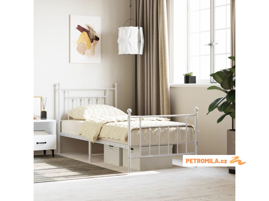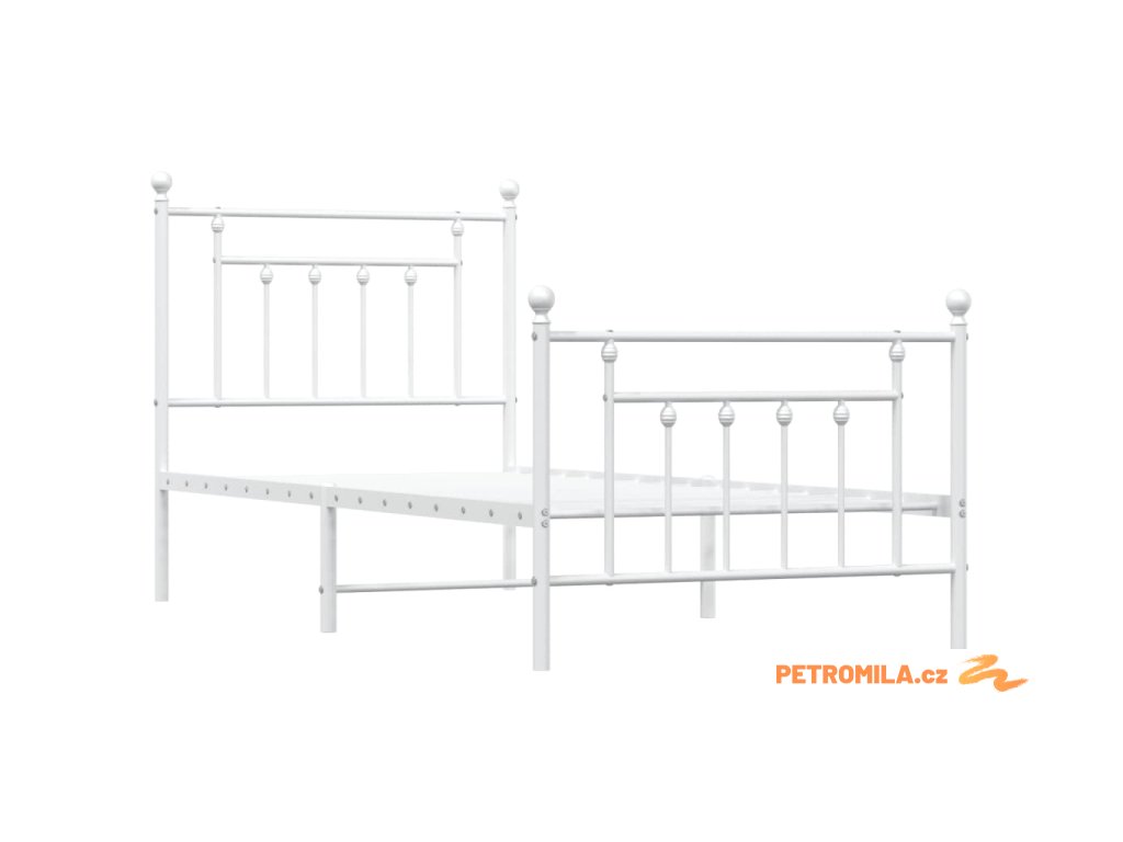 Kovový rám postele s hlavovým a nožním čelem bílý 90 x 200 cm