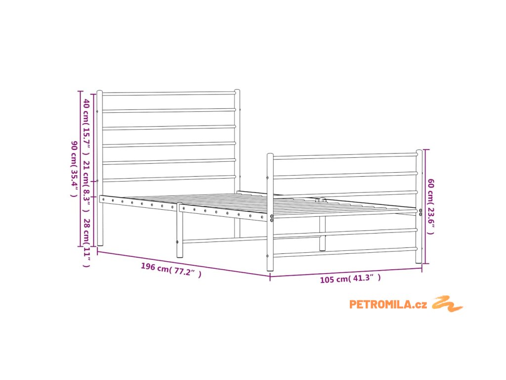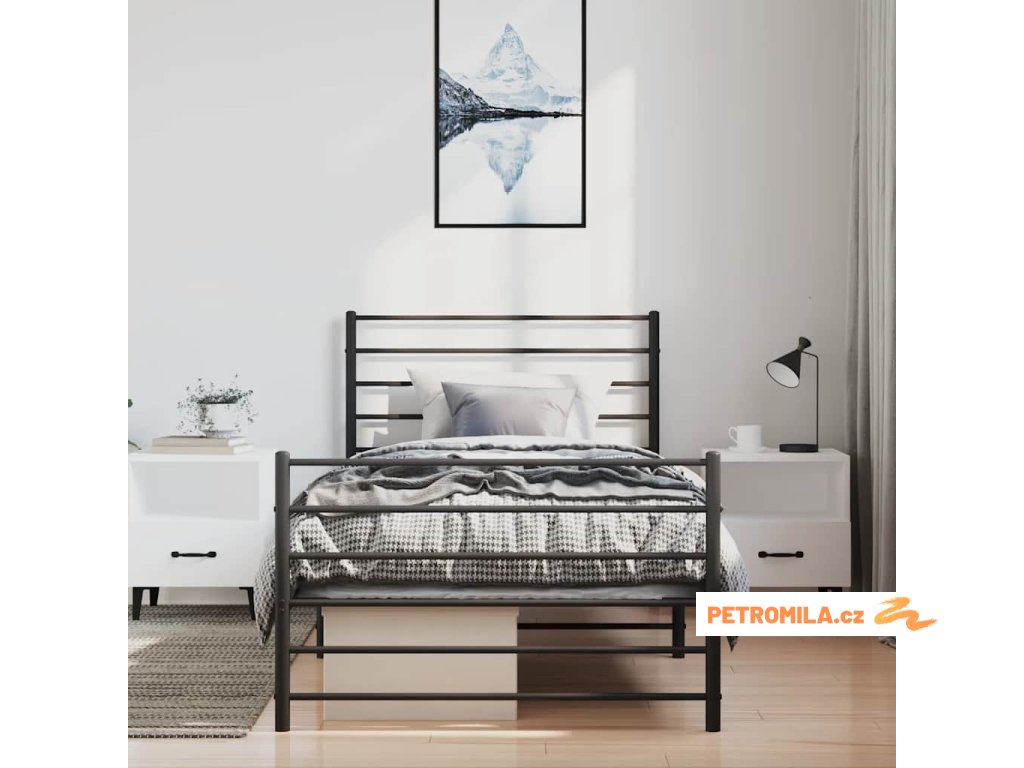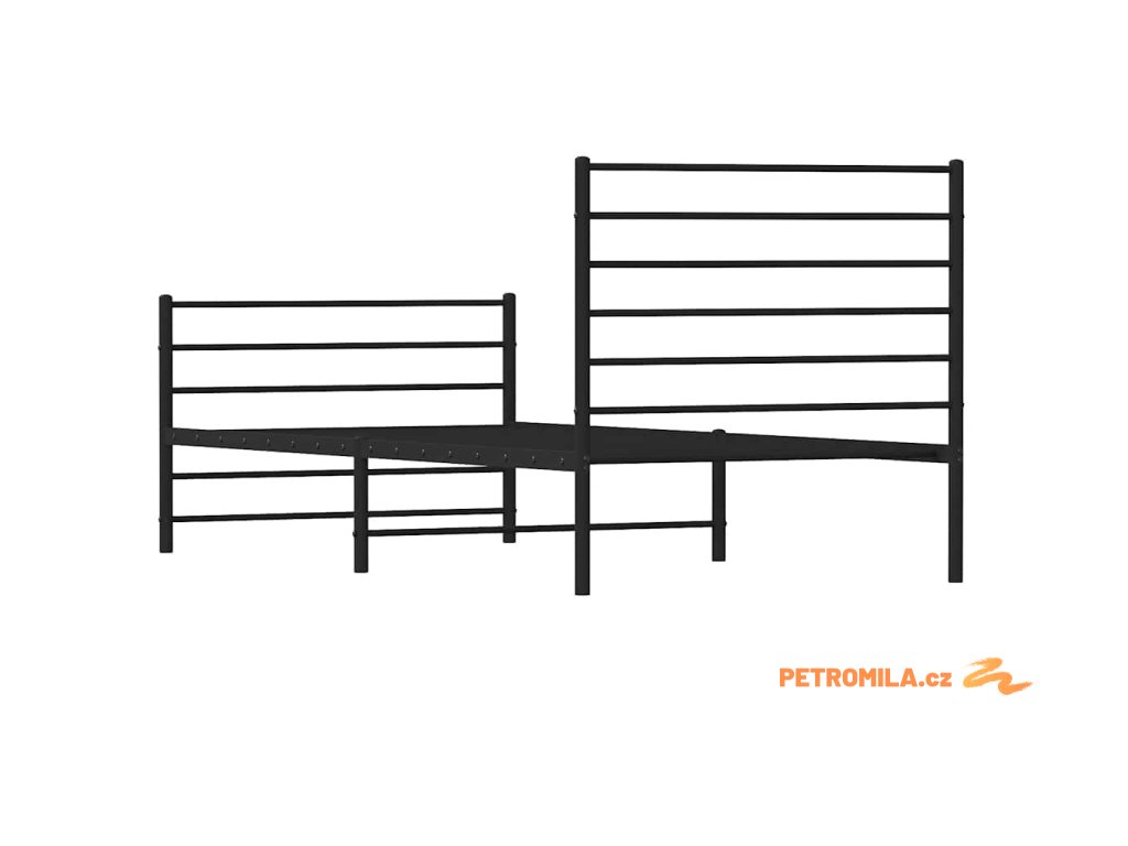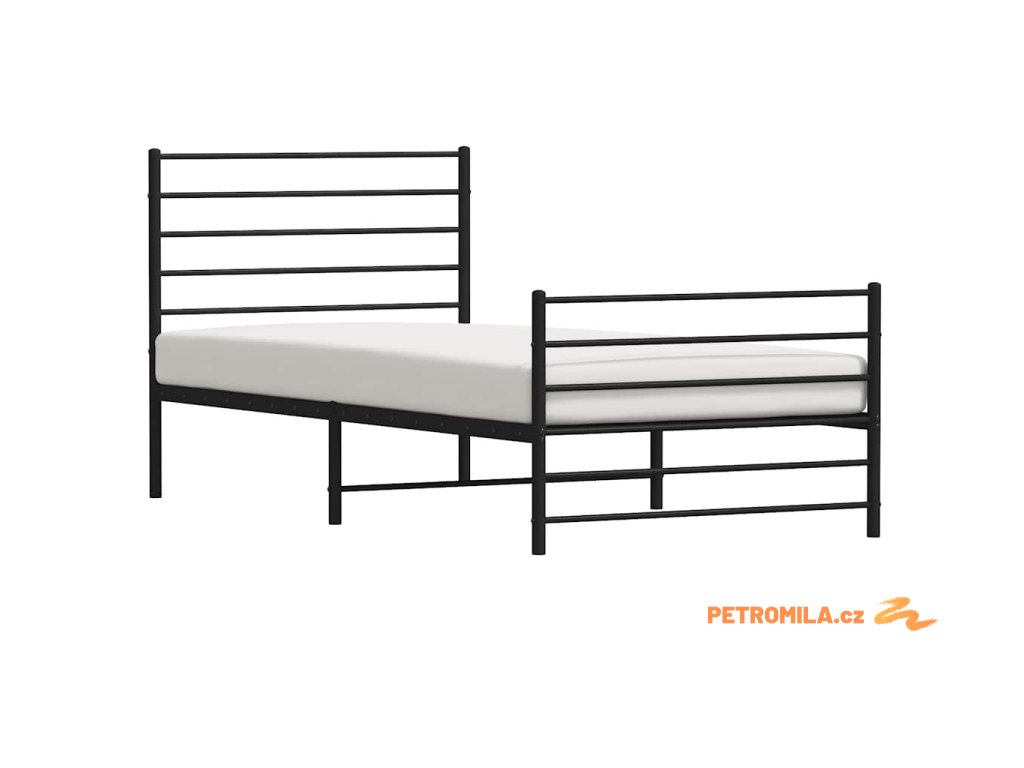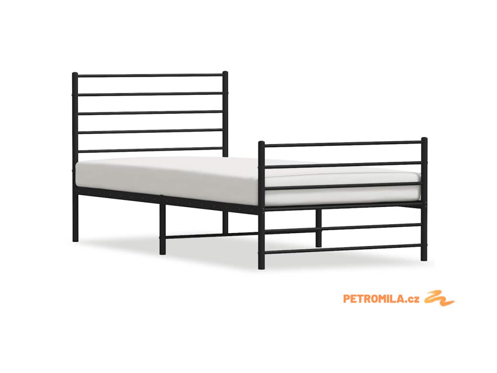 Kovový rám postele s hlavovým a nožním čelem černý 100 x 190 cm