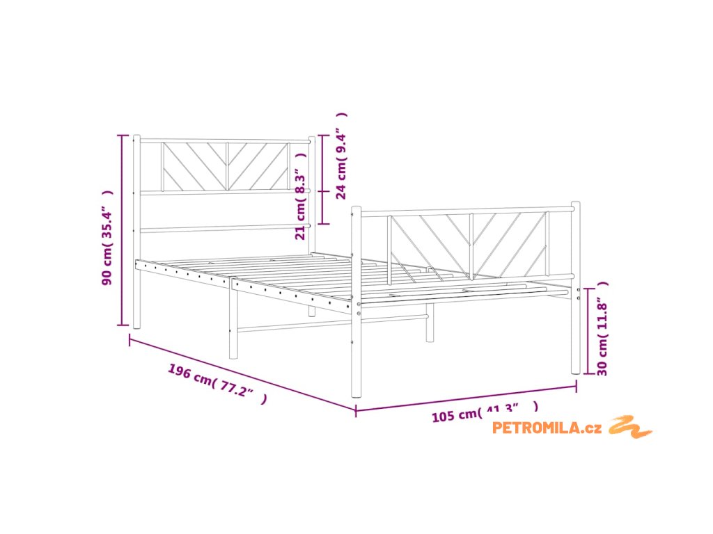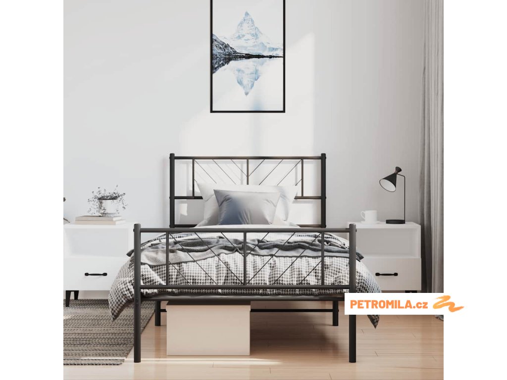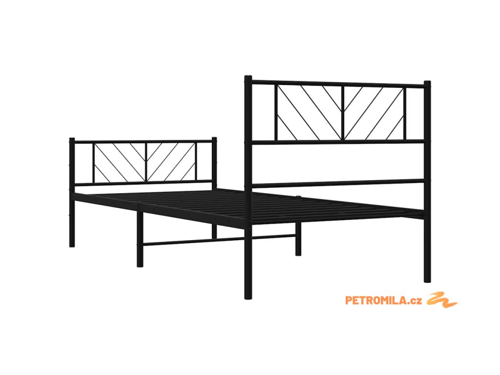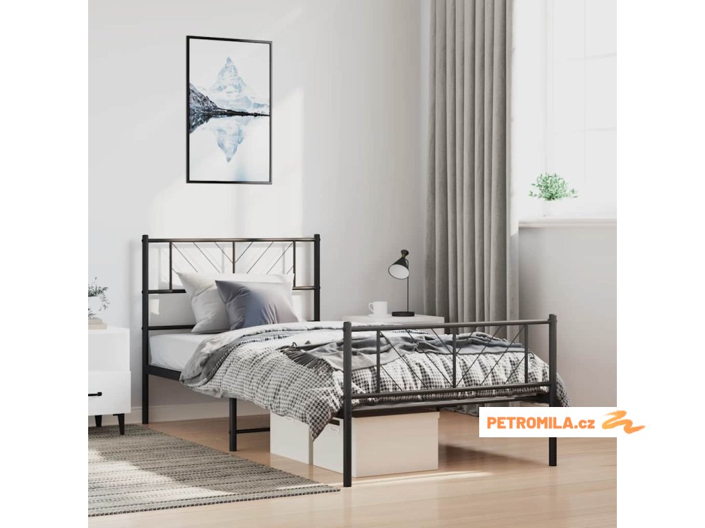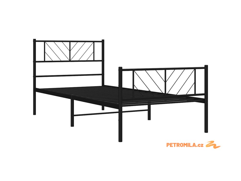 Kovový rám postele s hlavovým a nožním čelem černý 100 x 190 cm