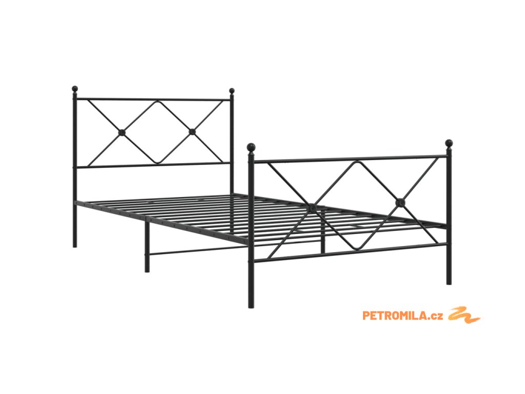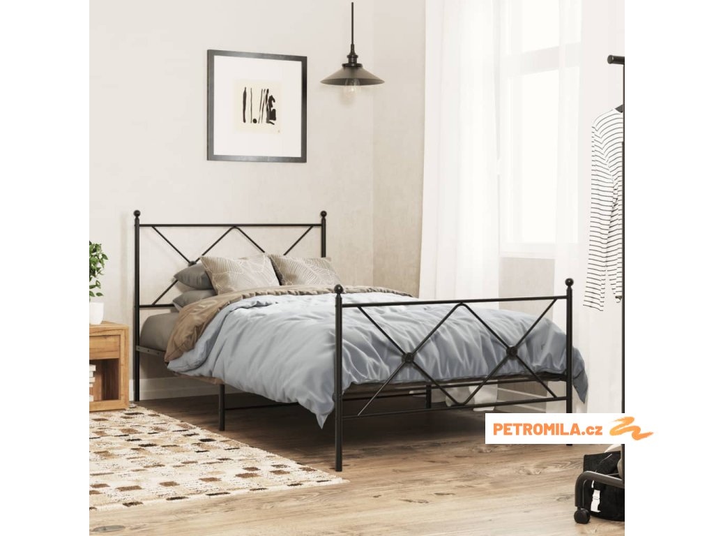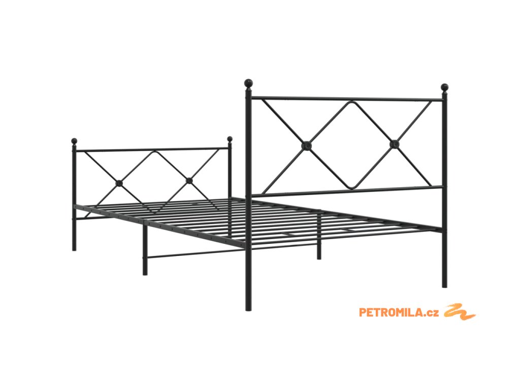 Kovový rám postele s hlavovým a nožním čelem černý 100 x 190 cm