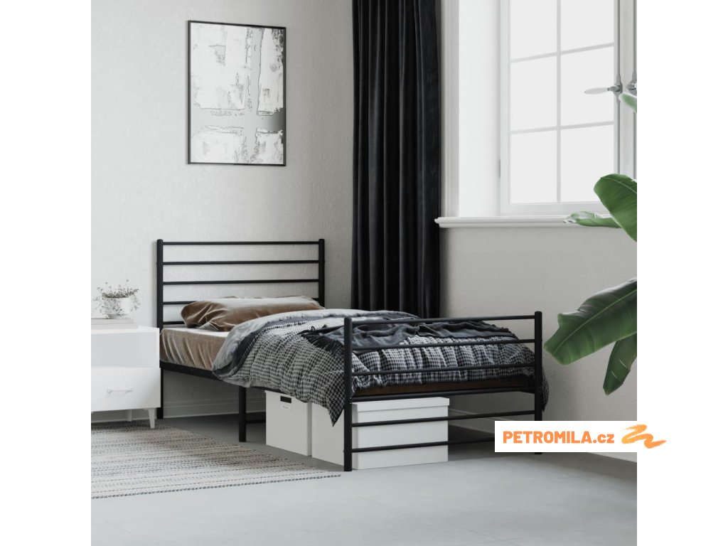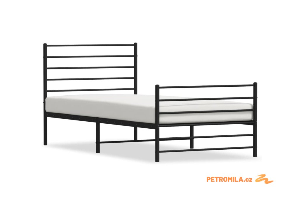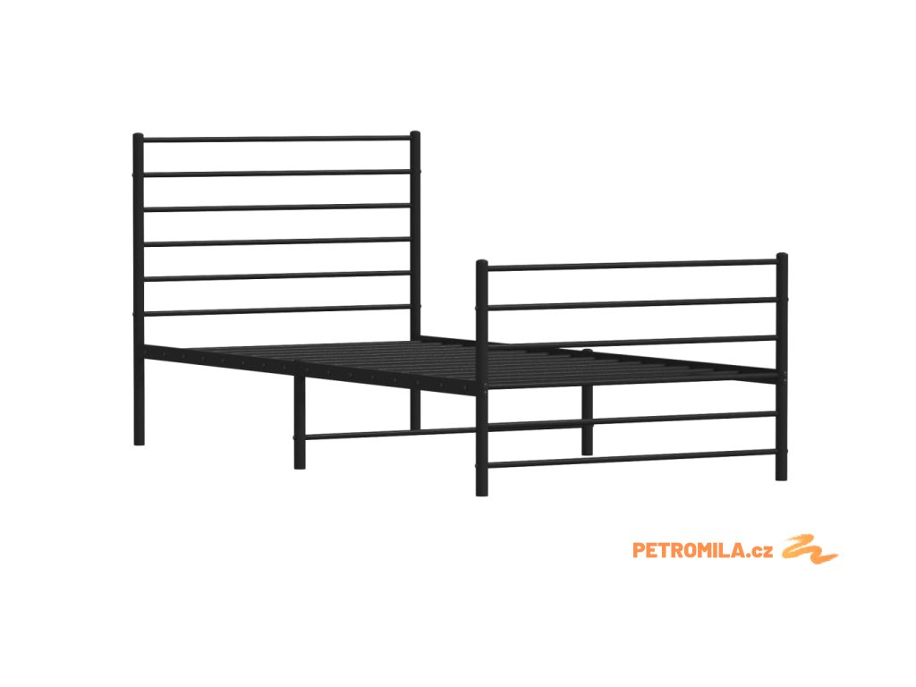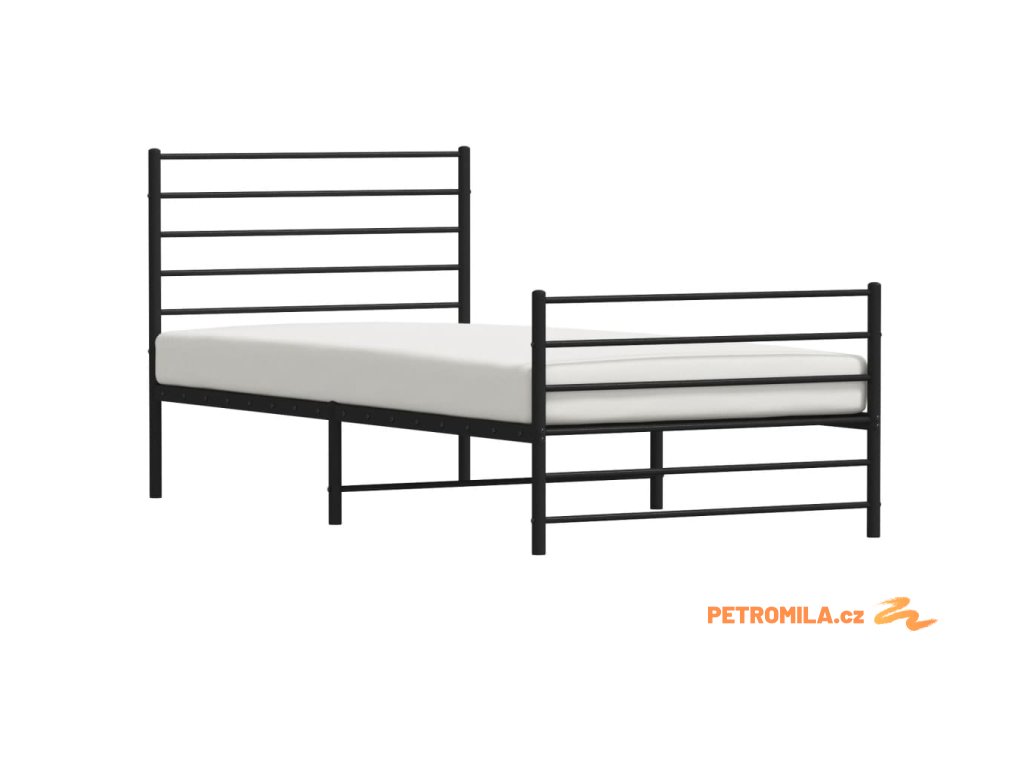 Kovový rám postele s hlavovým a nožním čelem černý 107 x 203 cm
