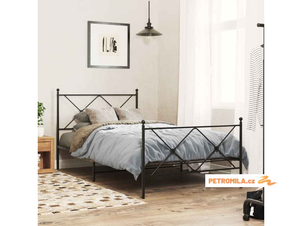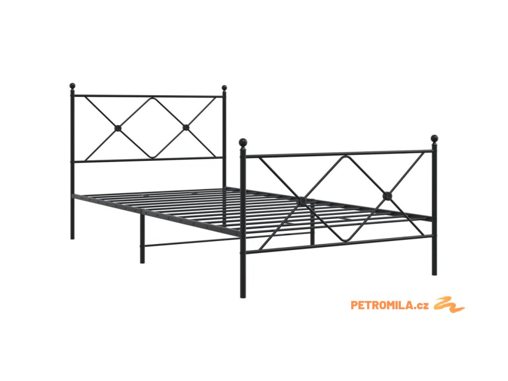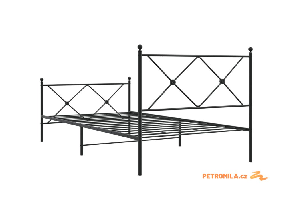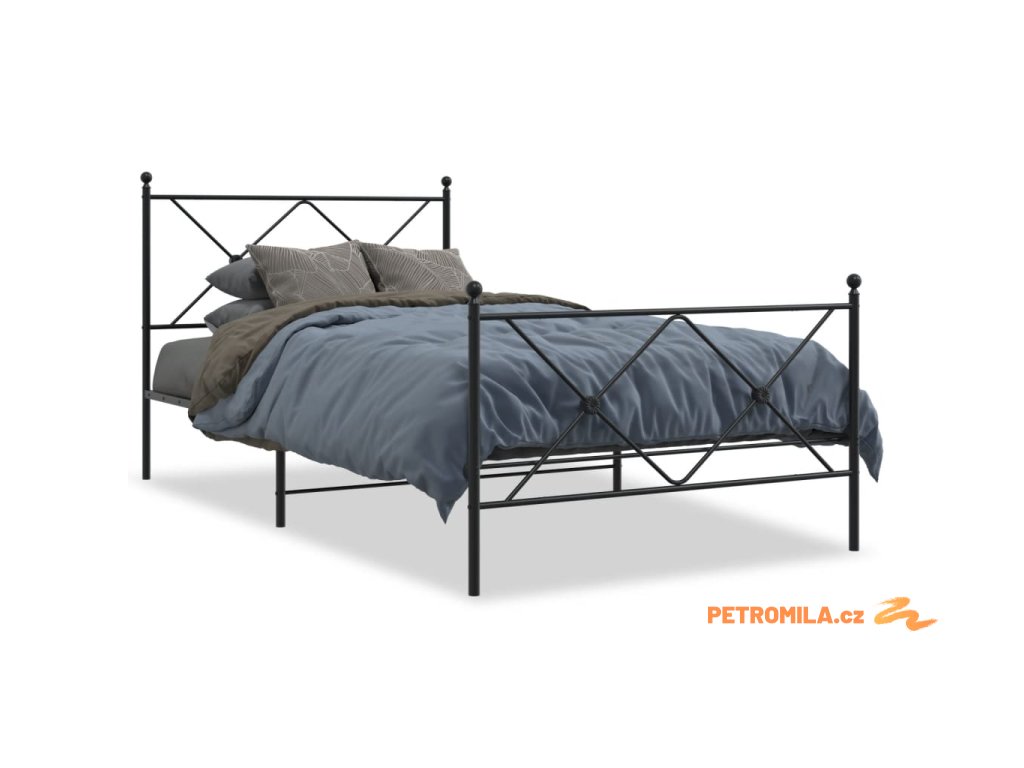 Kovový rám postele s hlavovým a nožním čelem černý 107 x 203 cm