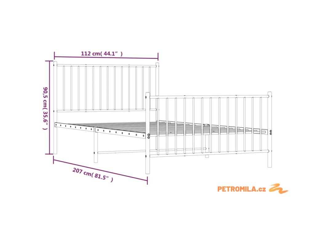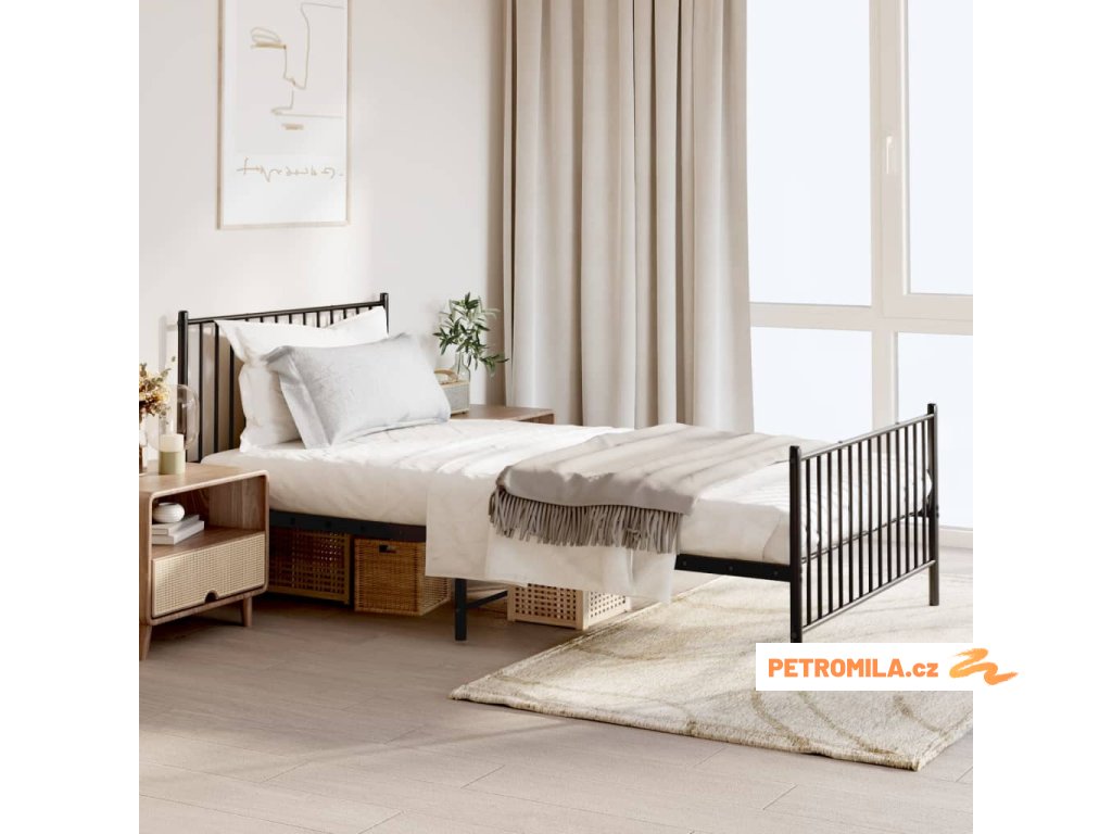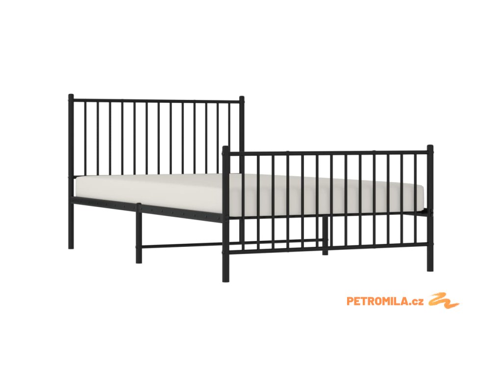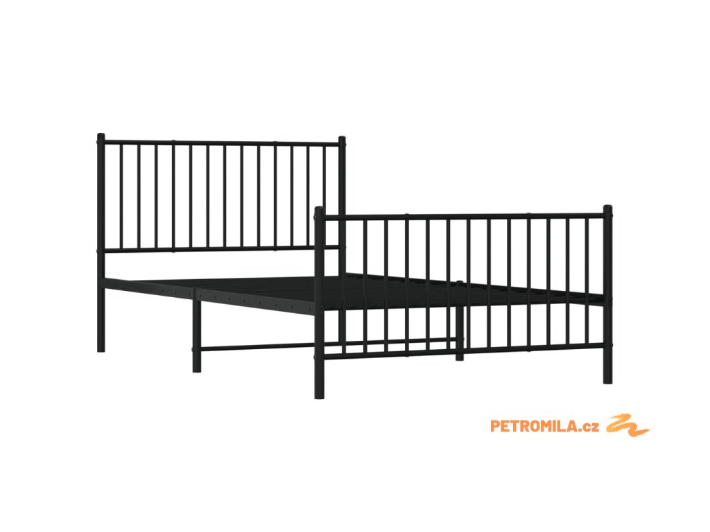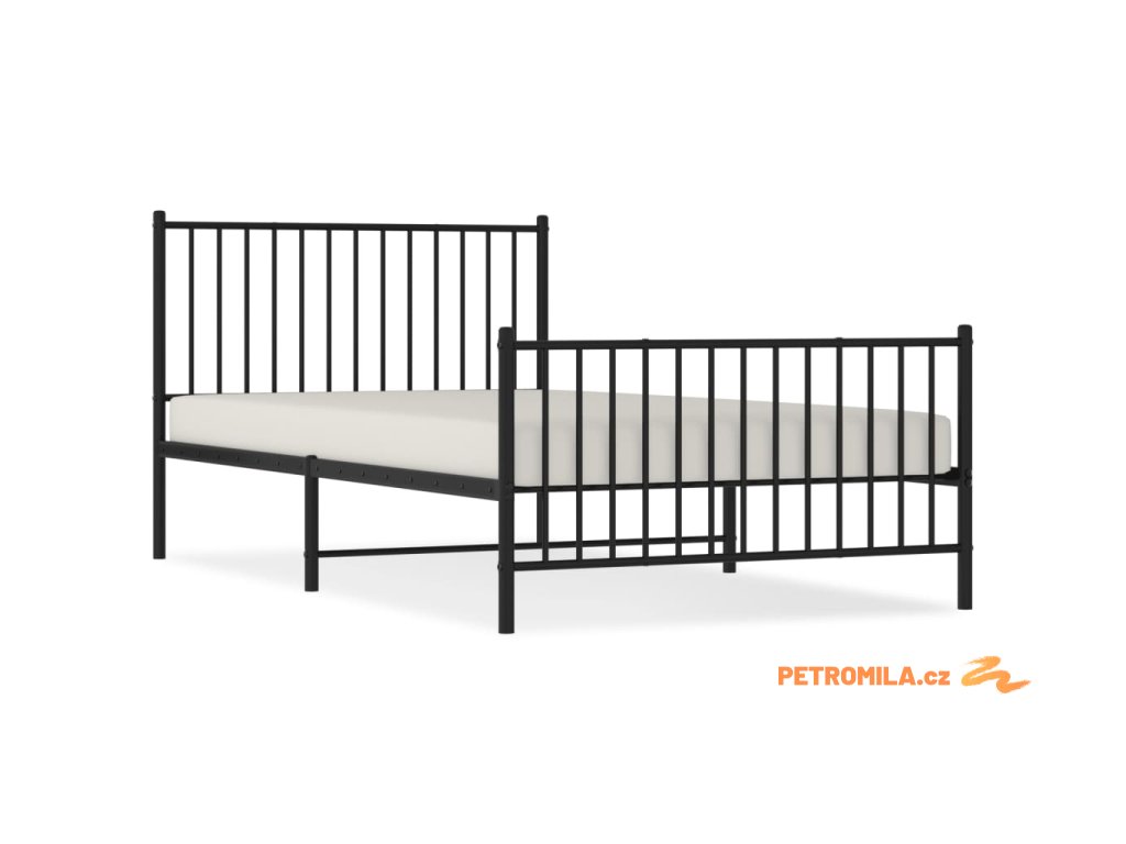 Kovový rám postele s hlavovým a nožním čelem černý 107 x 203 cm