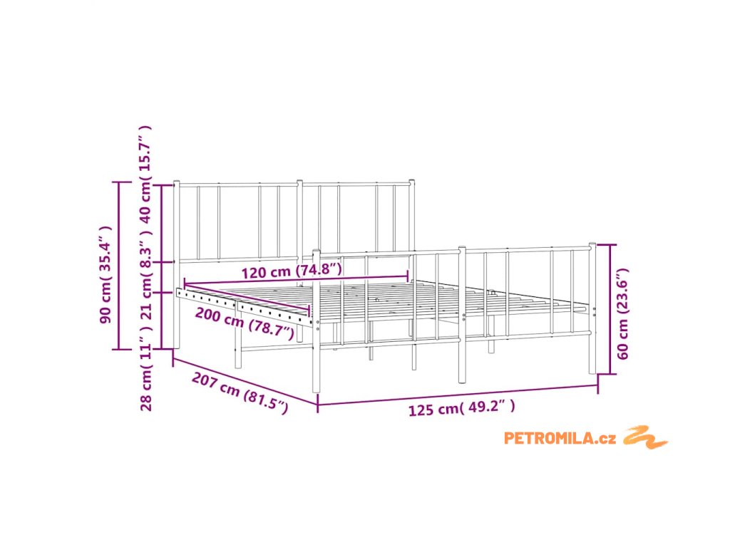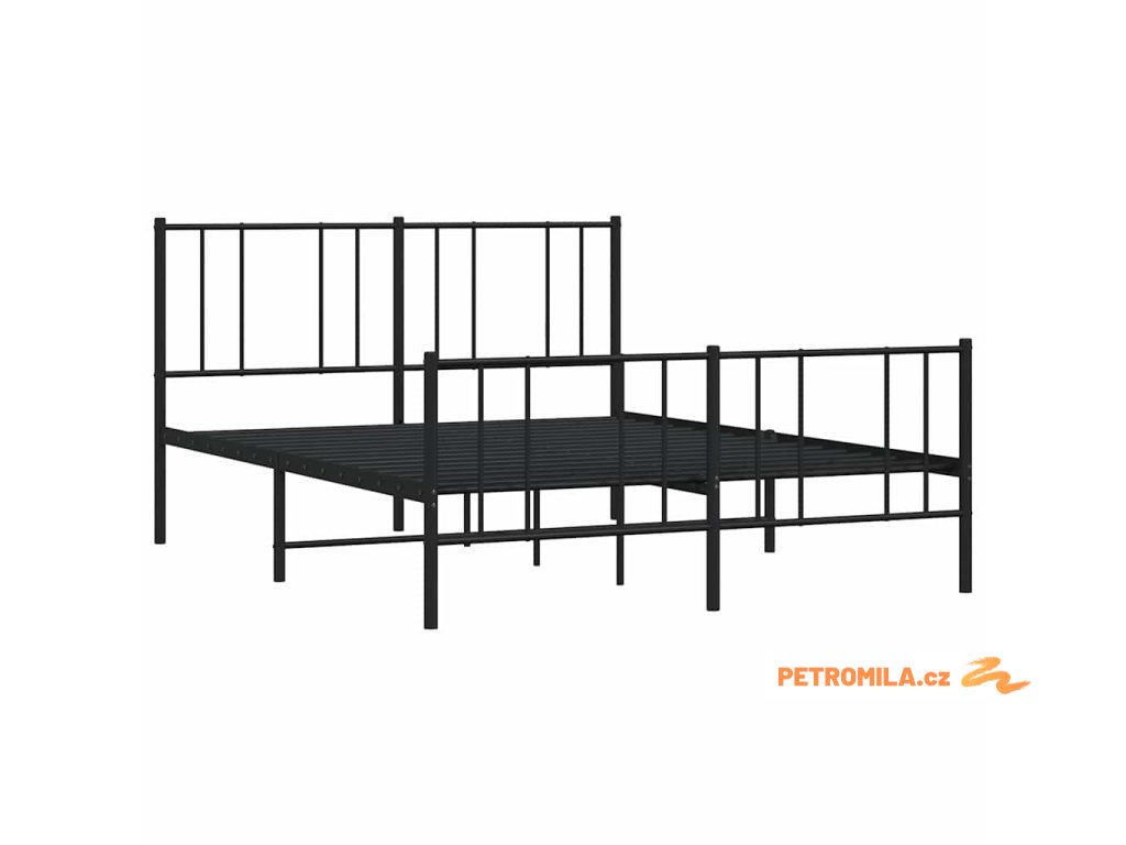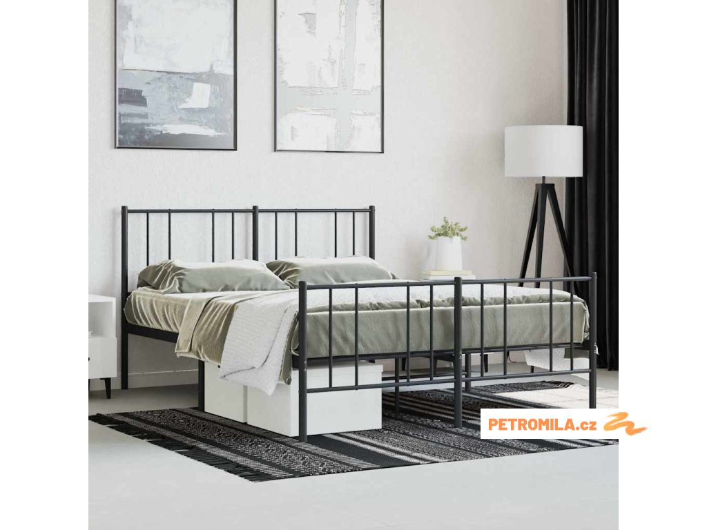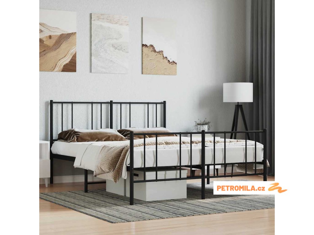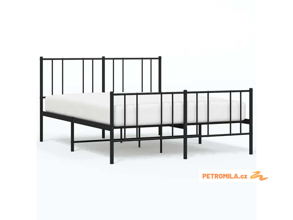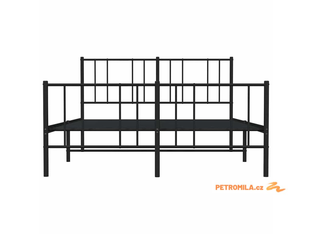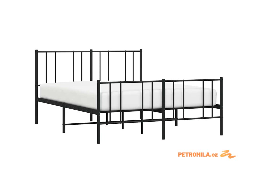 Kovový rám postele s hlavovým a nožním čelem černý 120 x 200 cm
