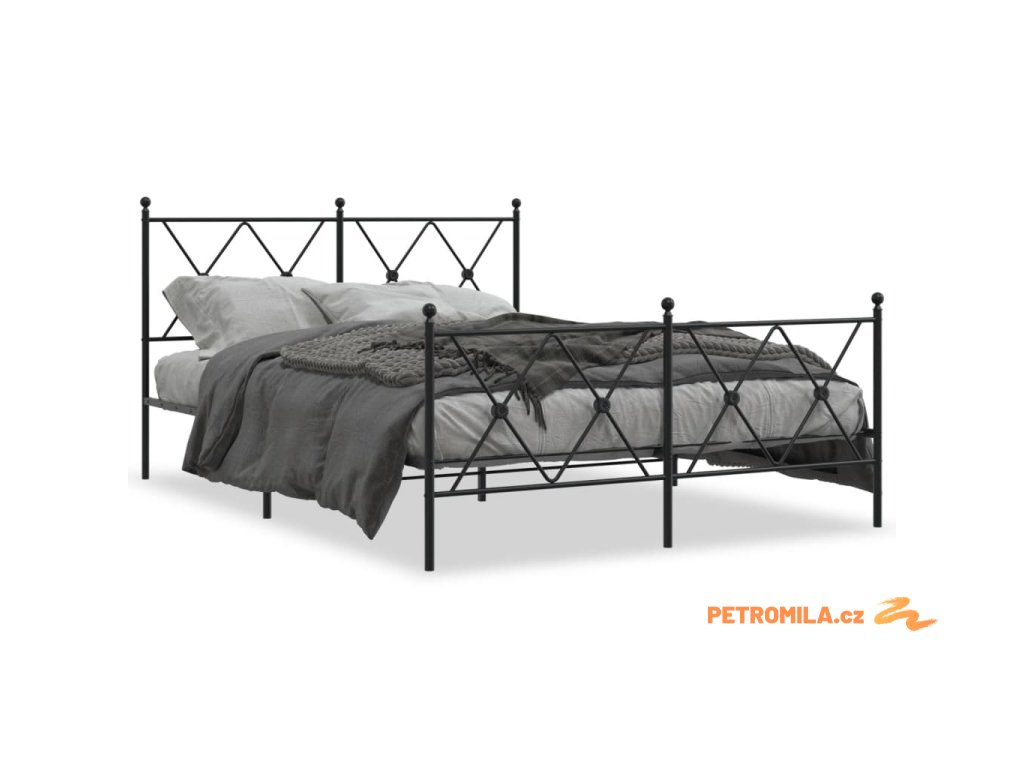 Kovový rám postele s hlavovým a nožním čelem černý 140 x 200 cm