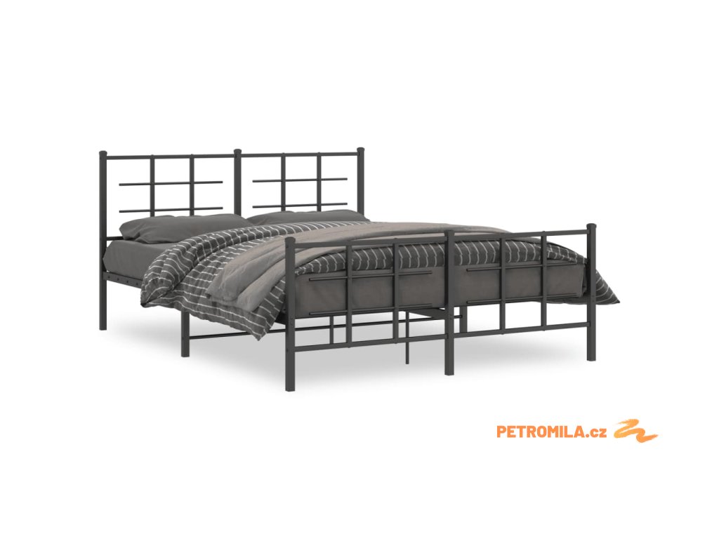Kovový rám postele s hlavovým a nožním čelem černý 150 x 200 cm