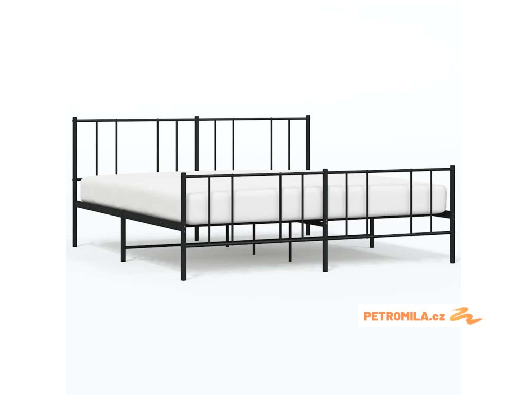 Kovový rám postele s hlavovým a nožním čelem černý 193 x 203 cm