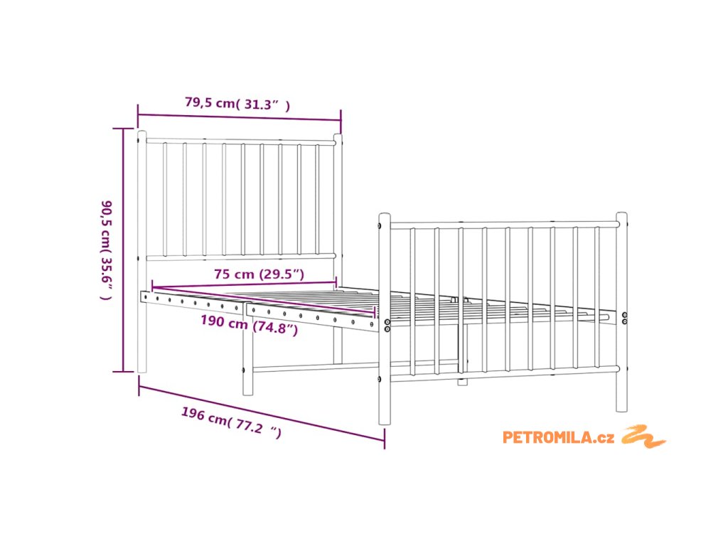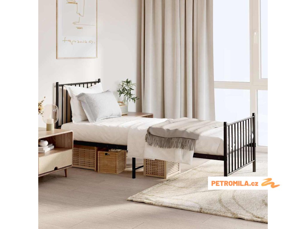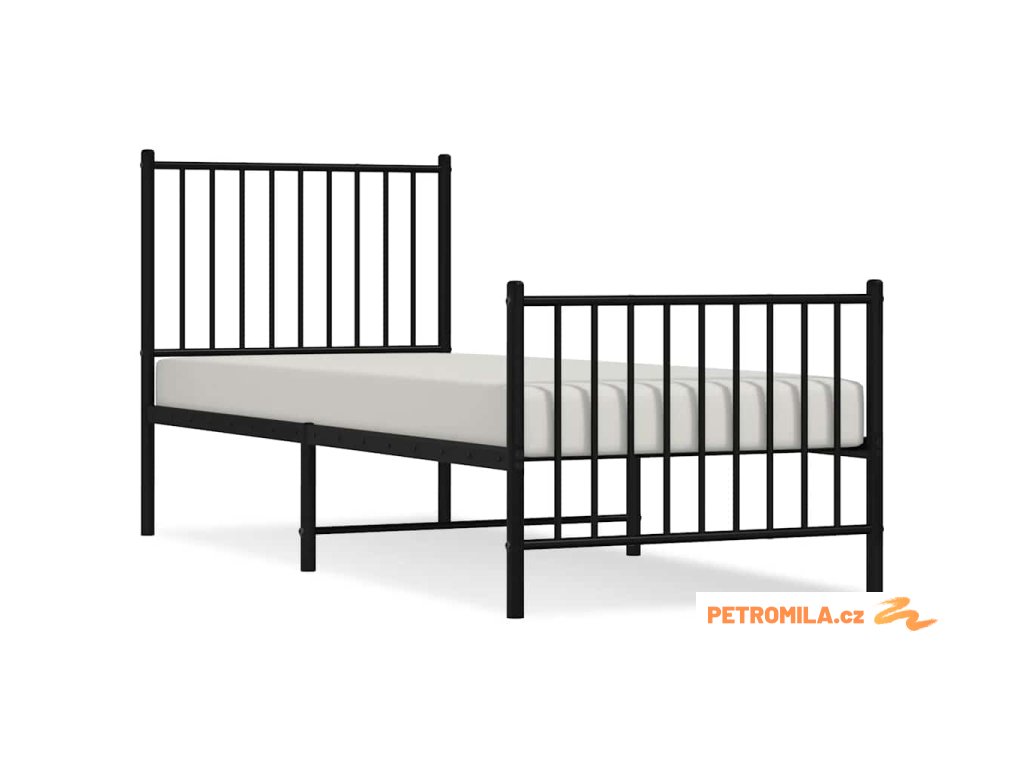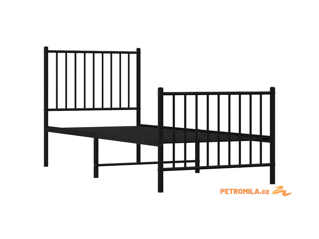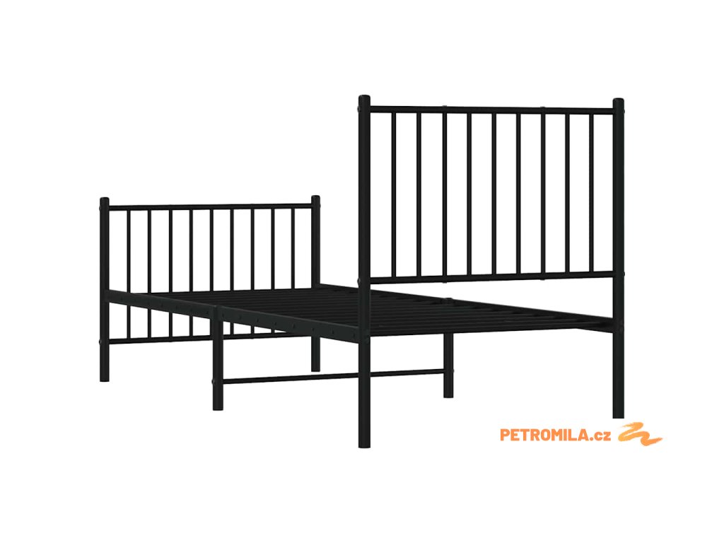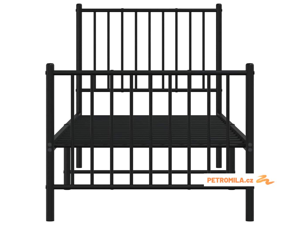 Kovový rám postele s hlavovým a nožním čelem černý 75 x 190 cm