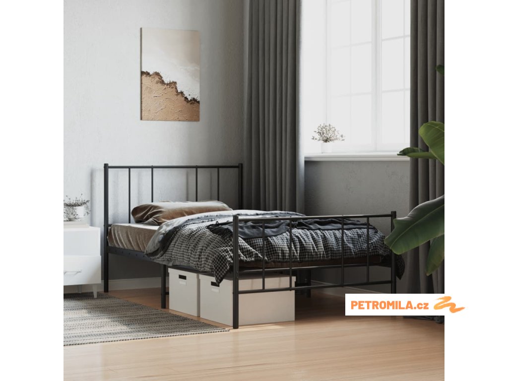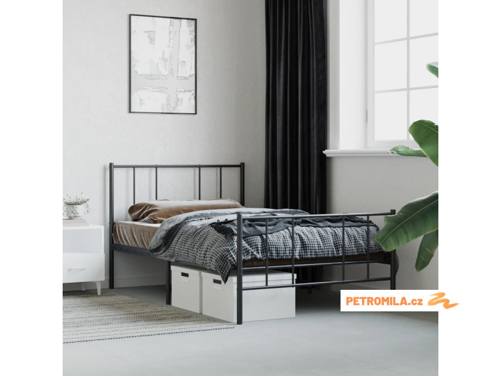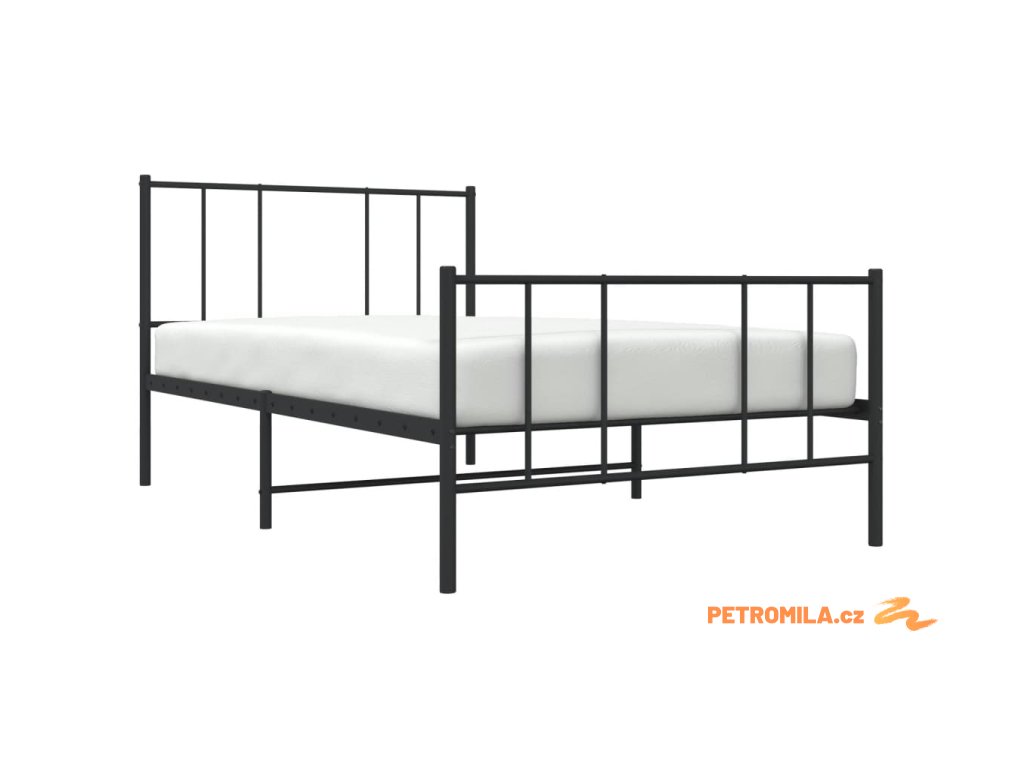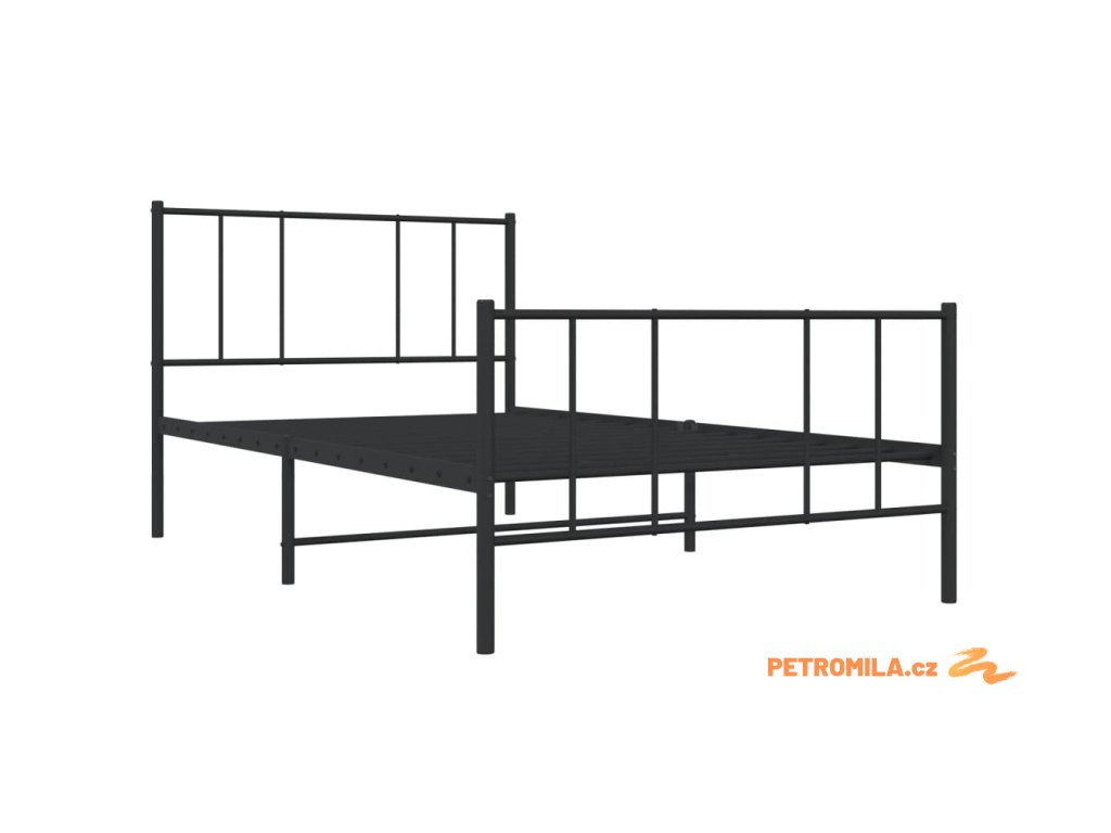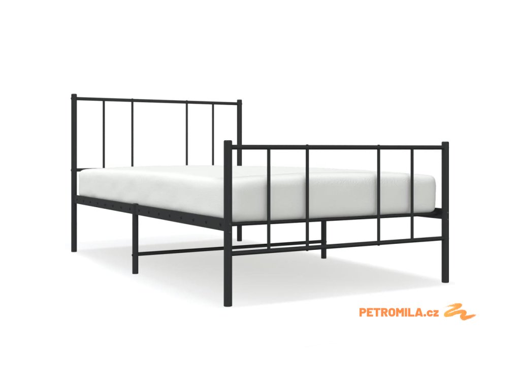 Kovový rám postele s hlavovým a nožním čelem černý 75 x 190 cm