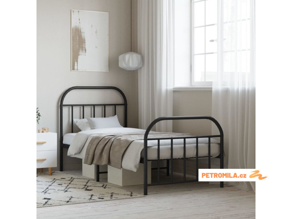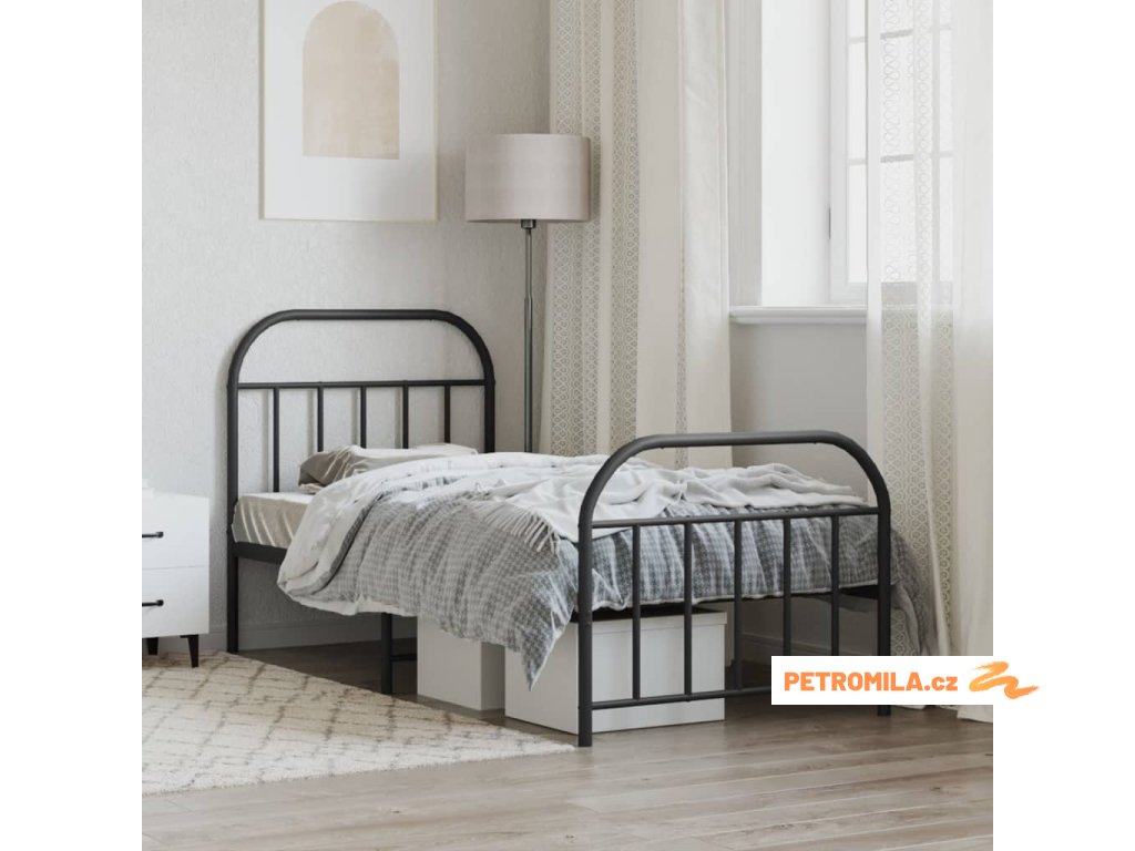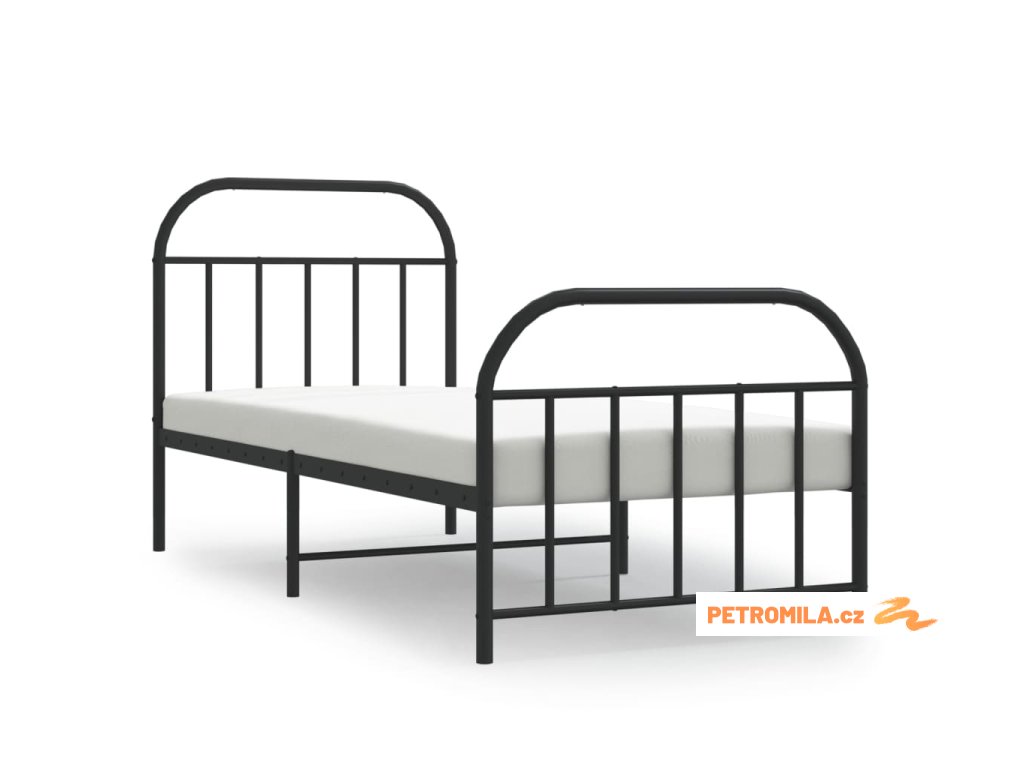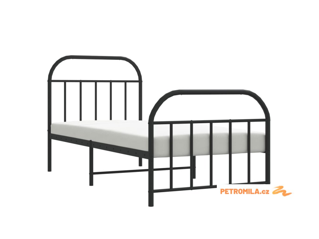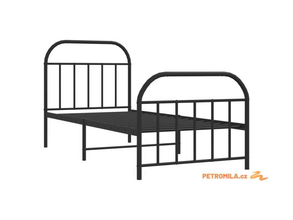 Kovový rám postele s hlavovým a nožním čelem černý 80 x 200 cm