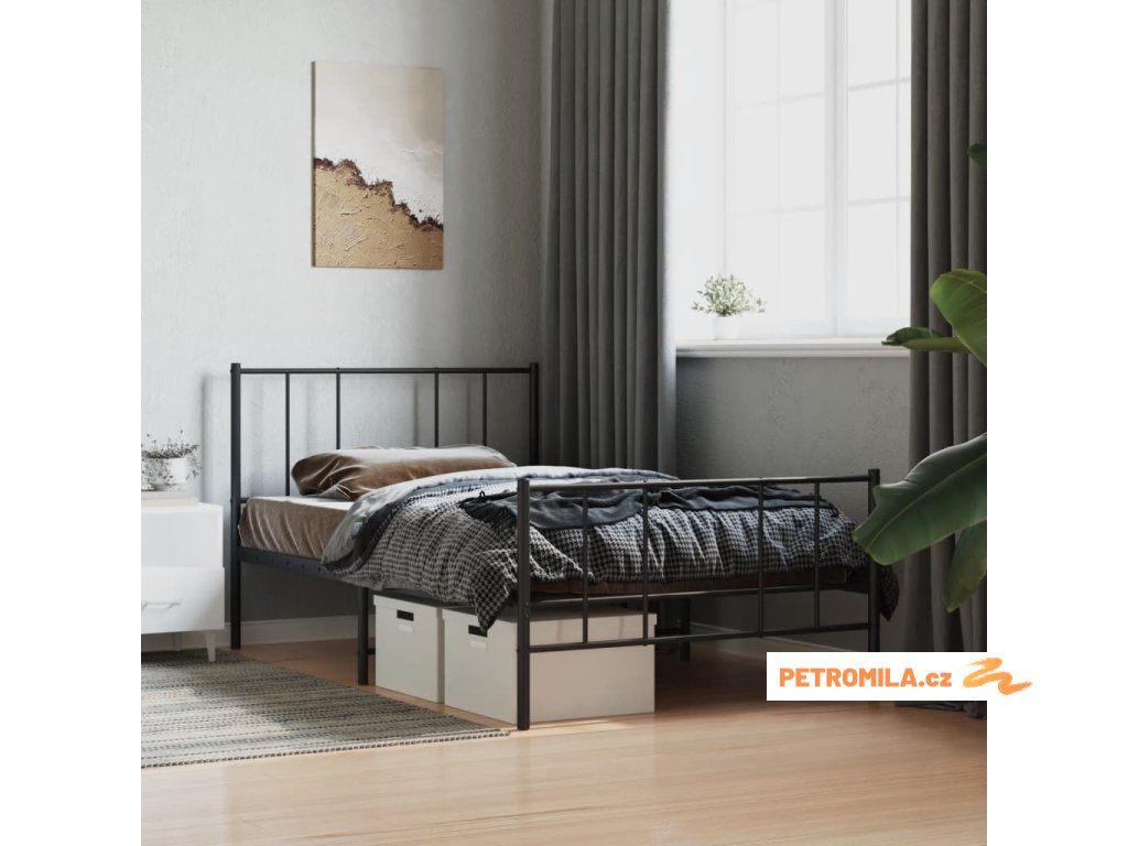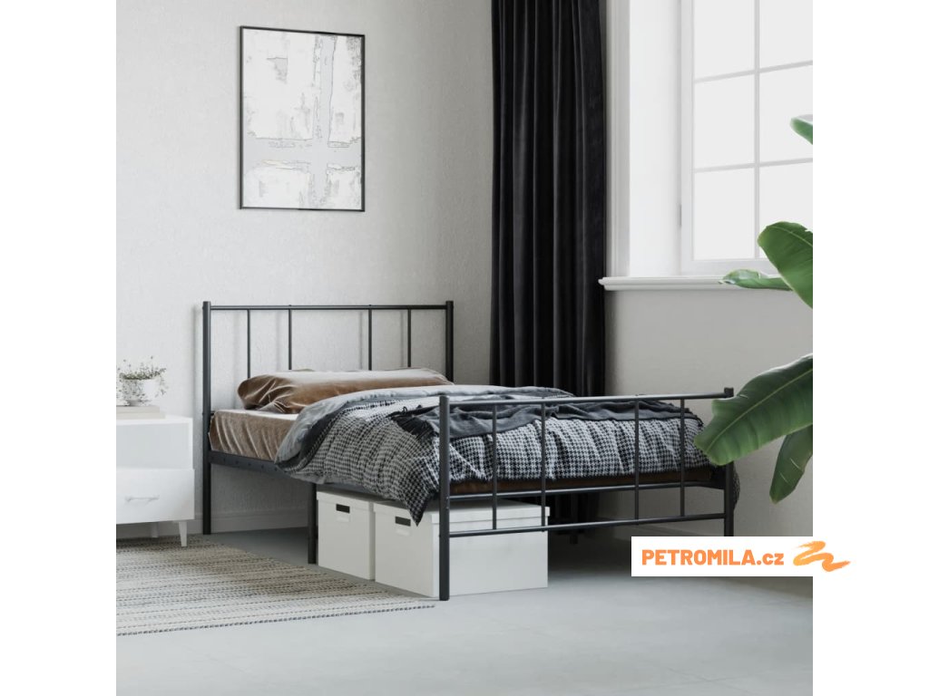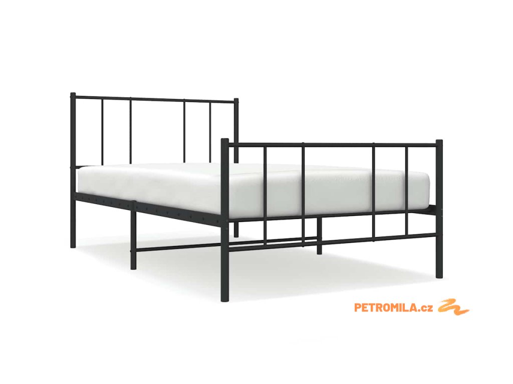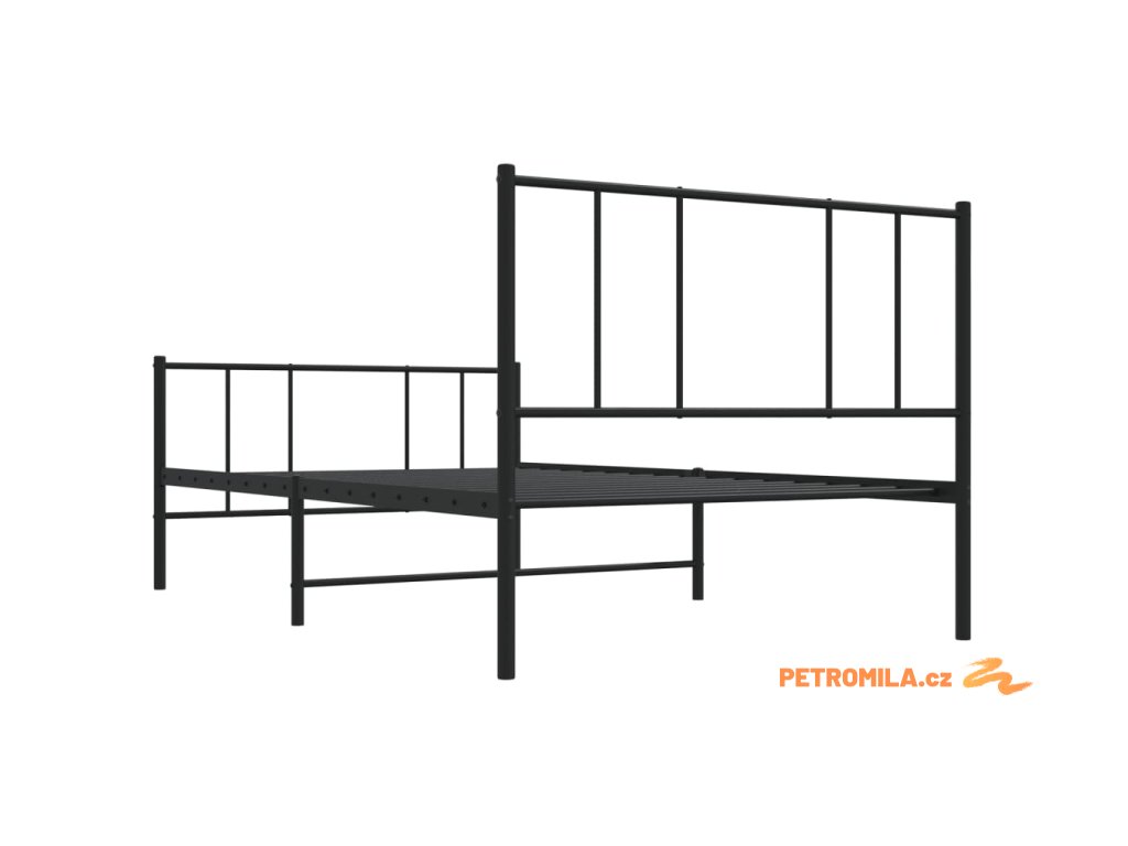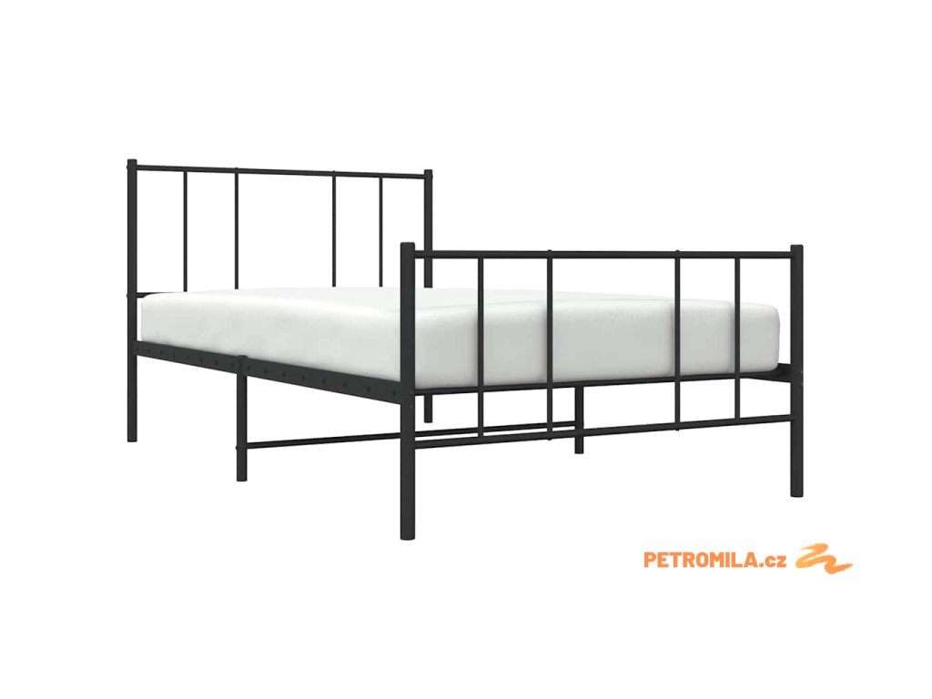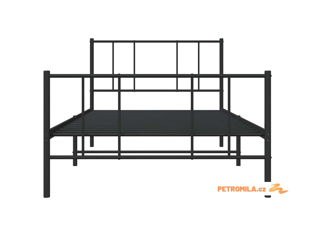 Kovový rám postele s hlavovým a nožním čelem černý 80 x 200 cm