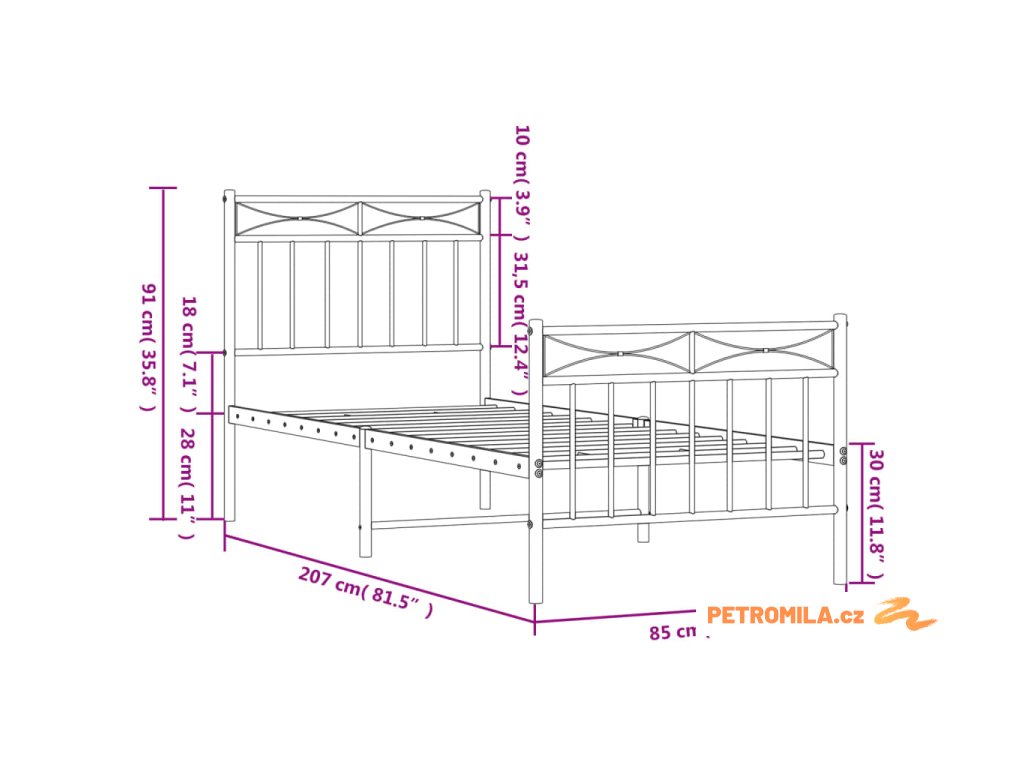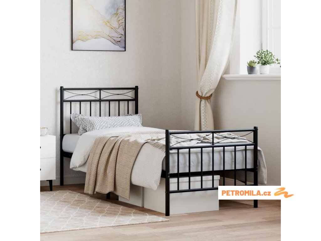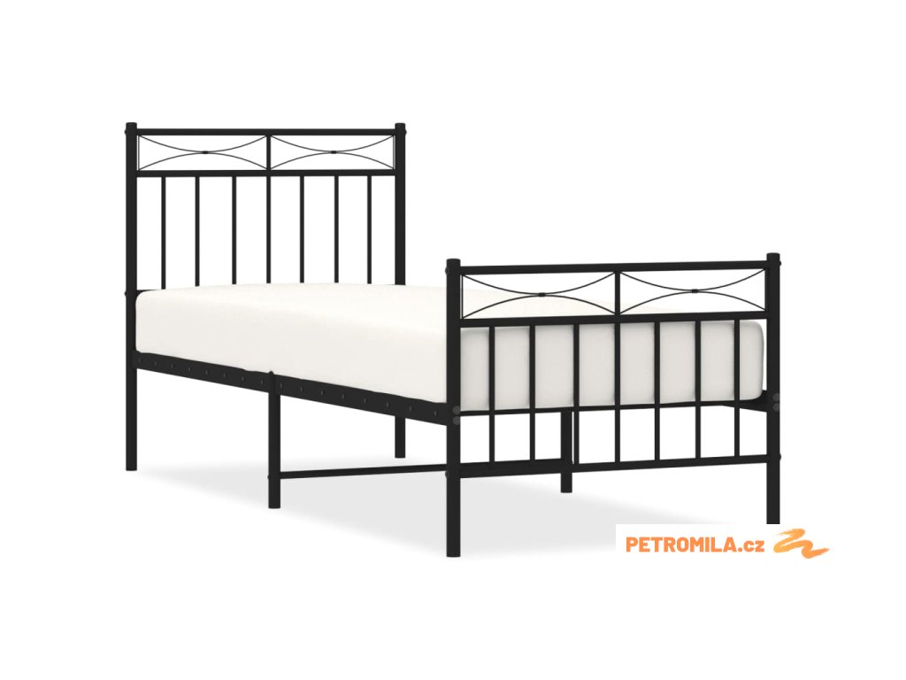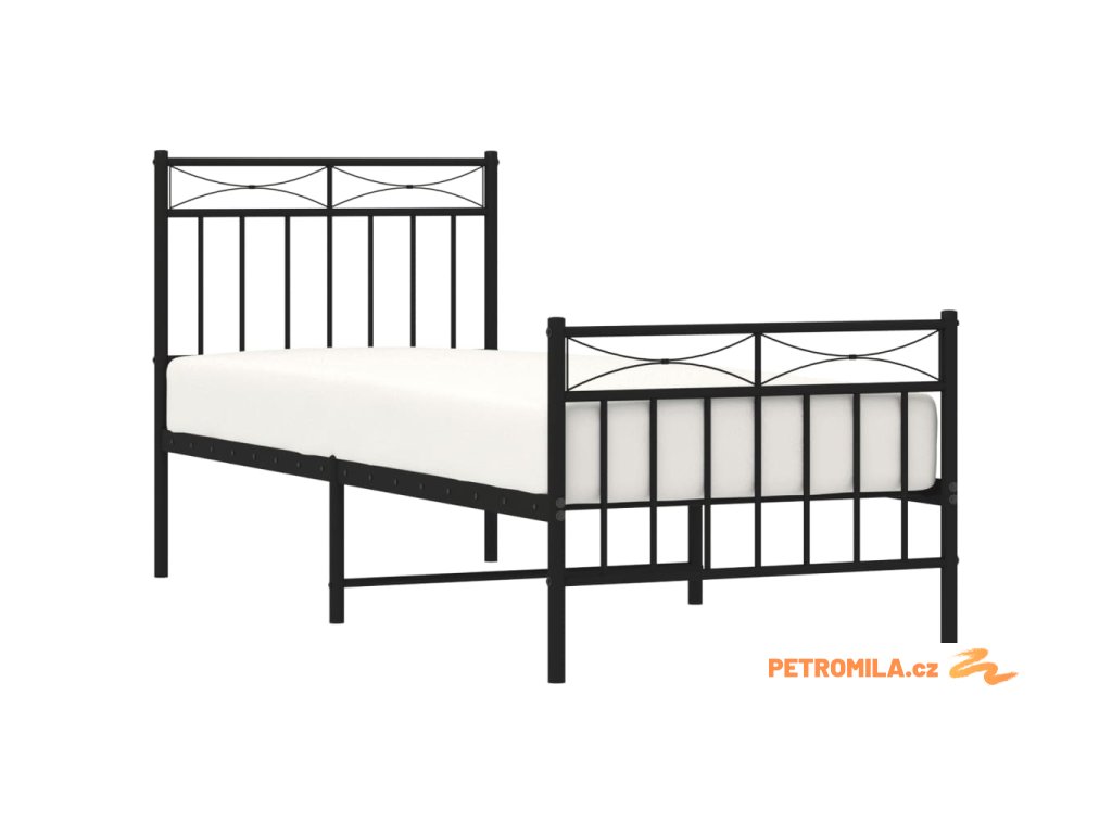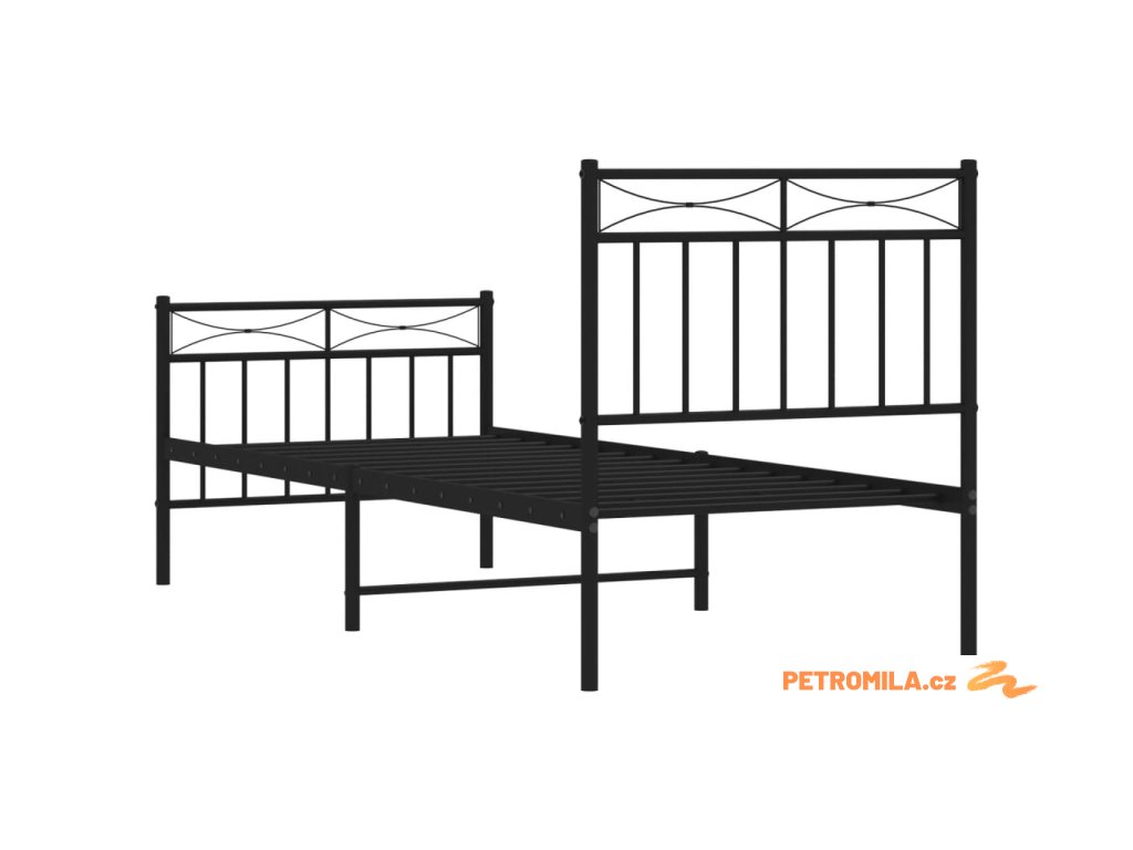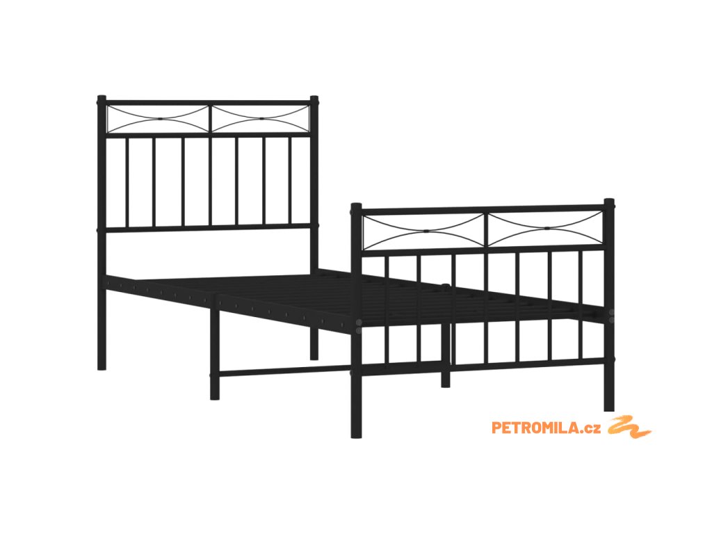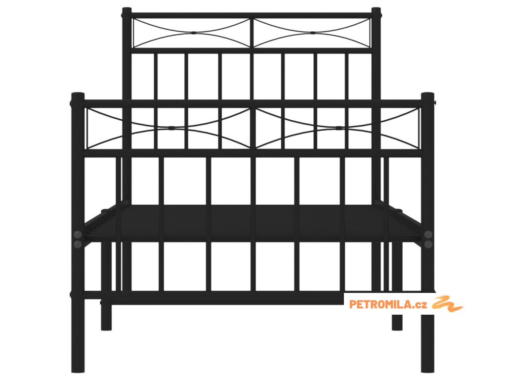 Kovový rám postele s hlavovým a nožním čelem černý 80 x 200 cm