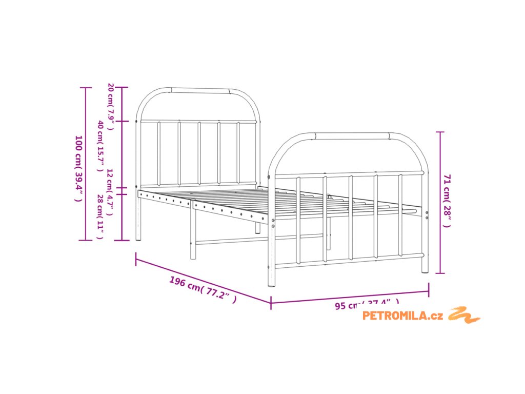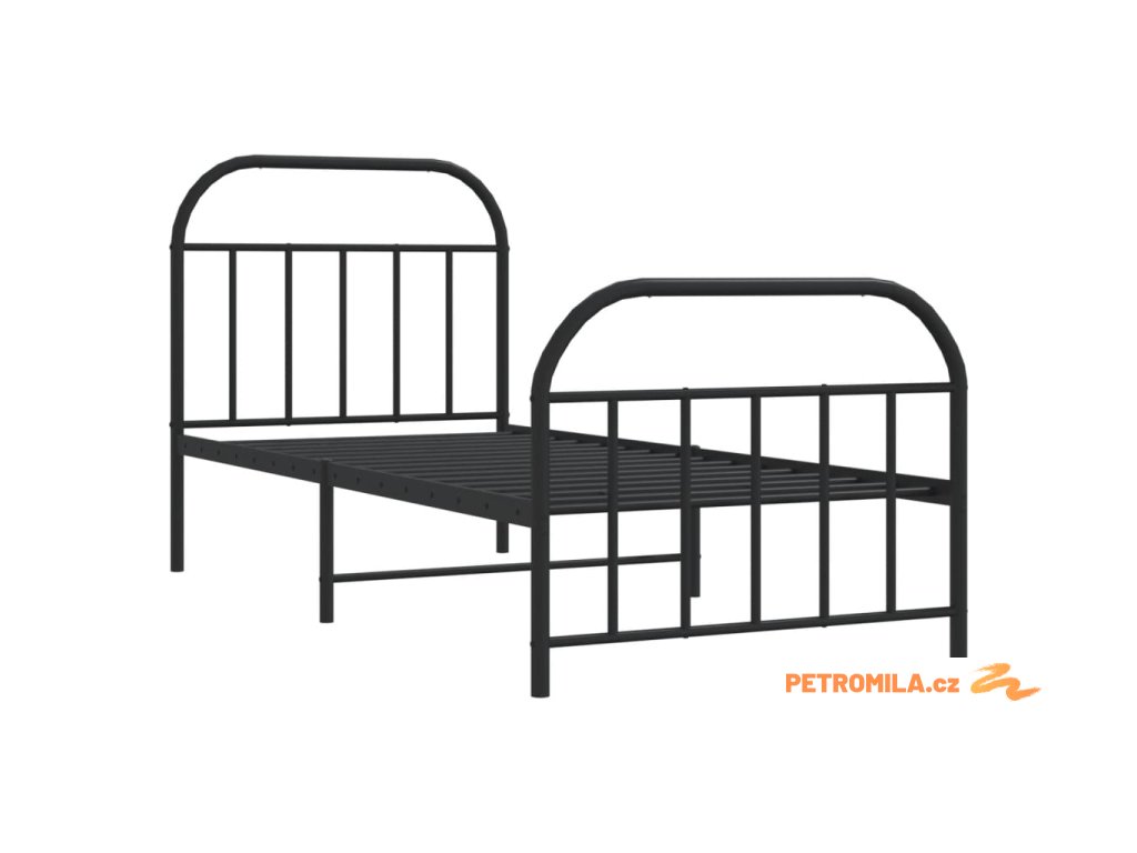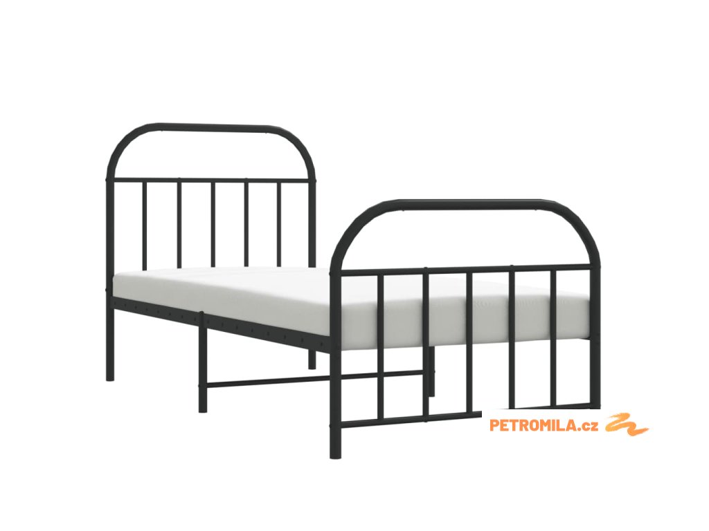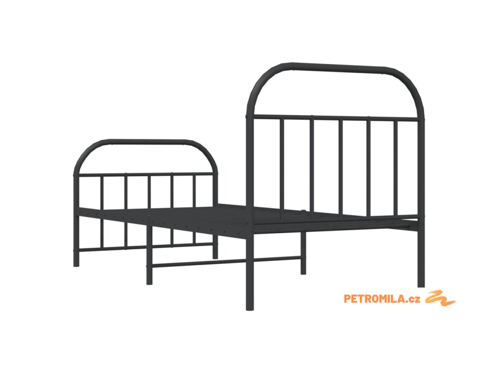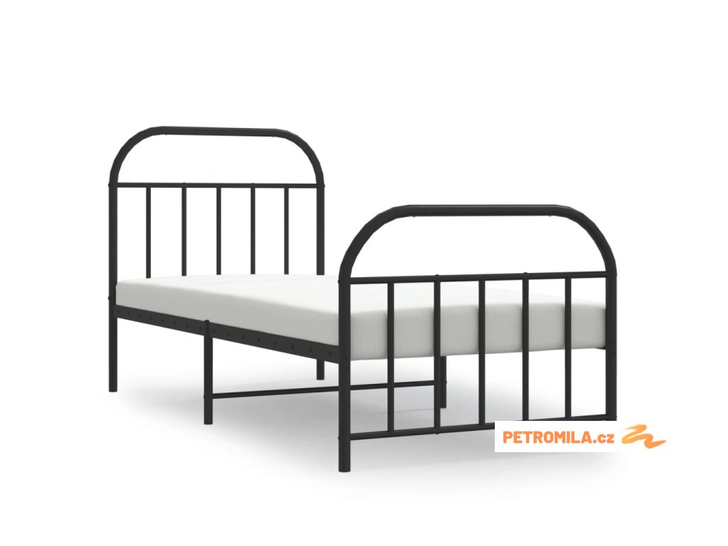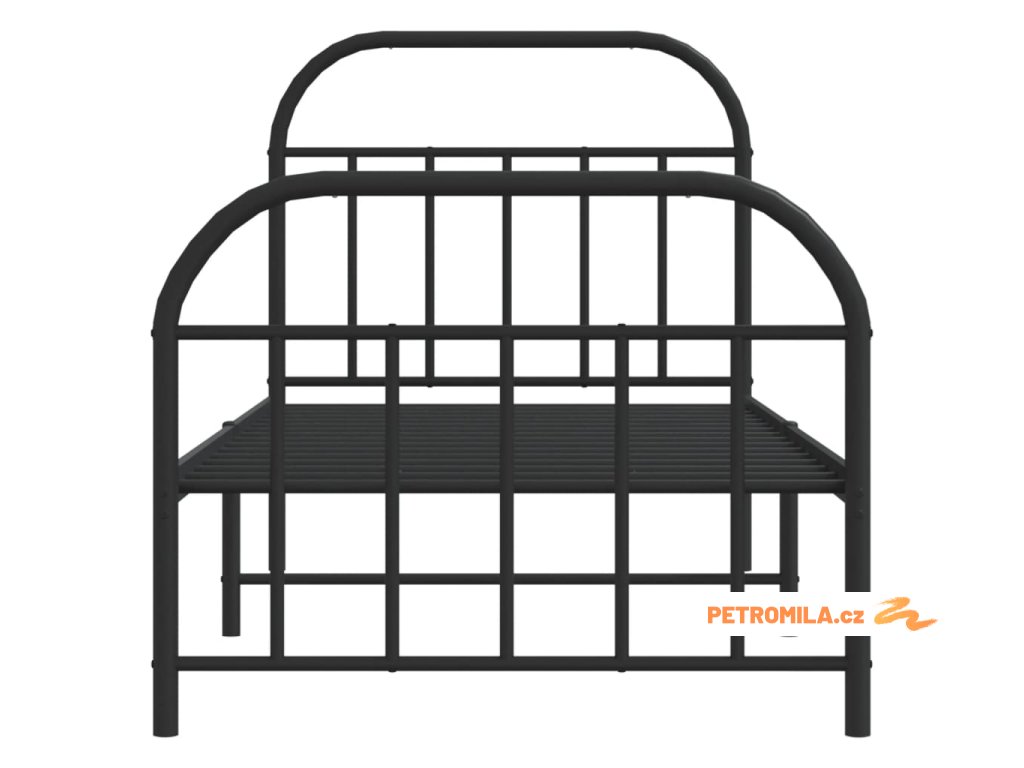 Kovový rám postele s hlavovým a nožním čelem černý 90 x 190 cm